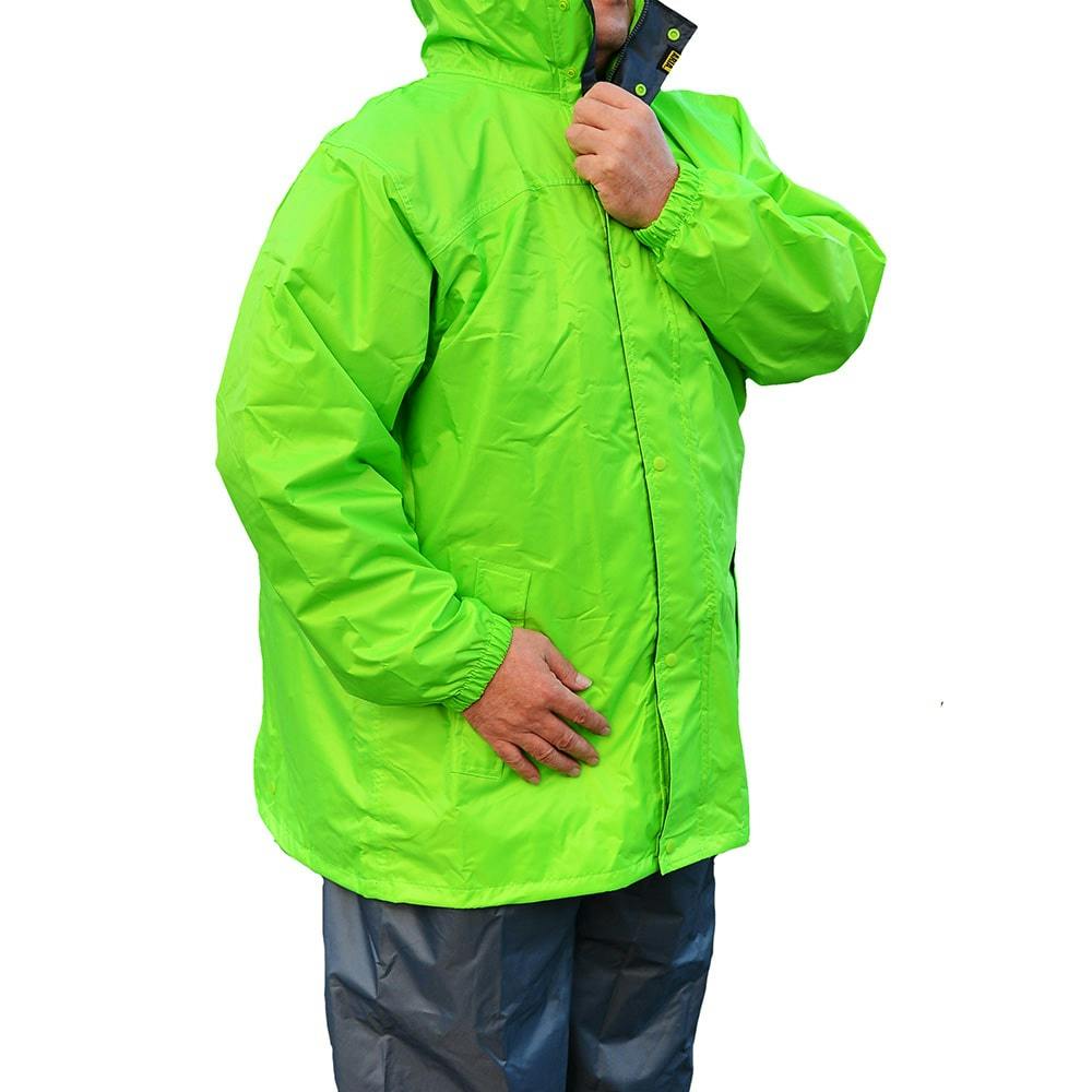背中マチ付き・上下メッシュ付・ジャケット両脇ポケット付・フード本体一体型・シューズガード機能・裾アジャスト機能