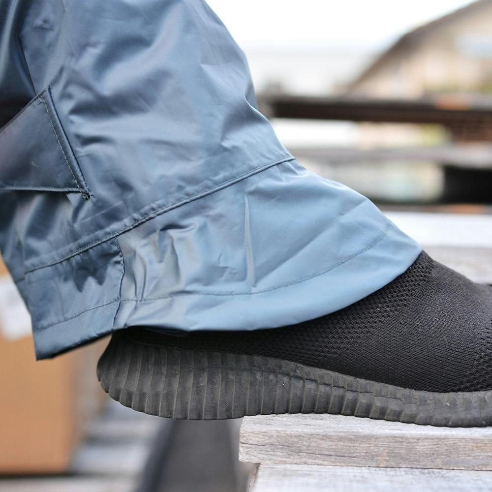 背中マチ付き・上下メッシュ付・ジャケット両脇ポケット付・フード本体一体型・シューズガード機能・裾アジャスト機能