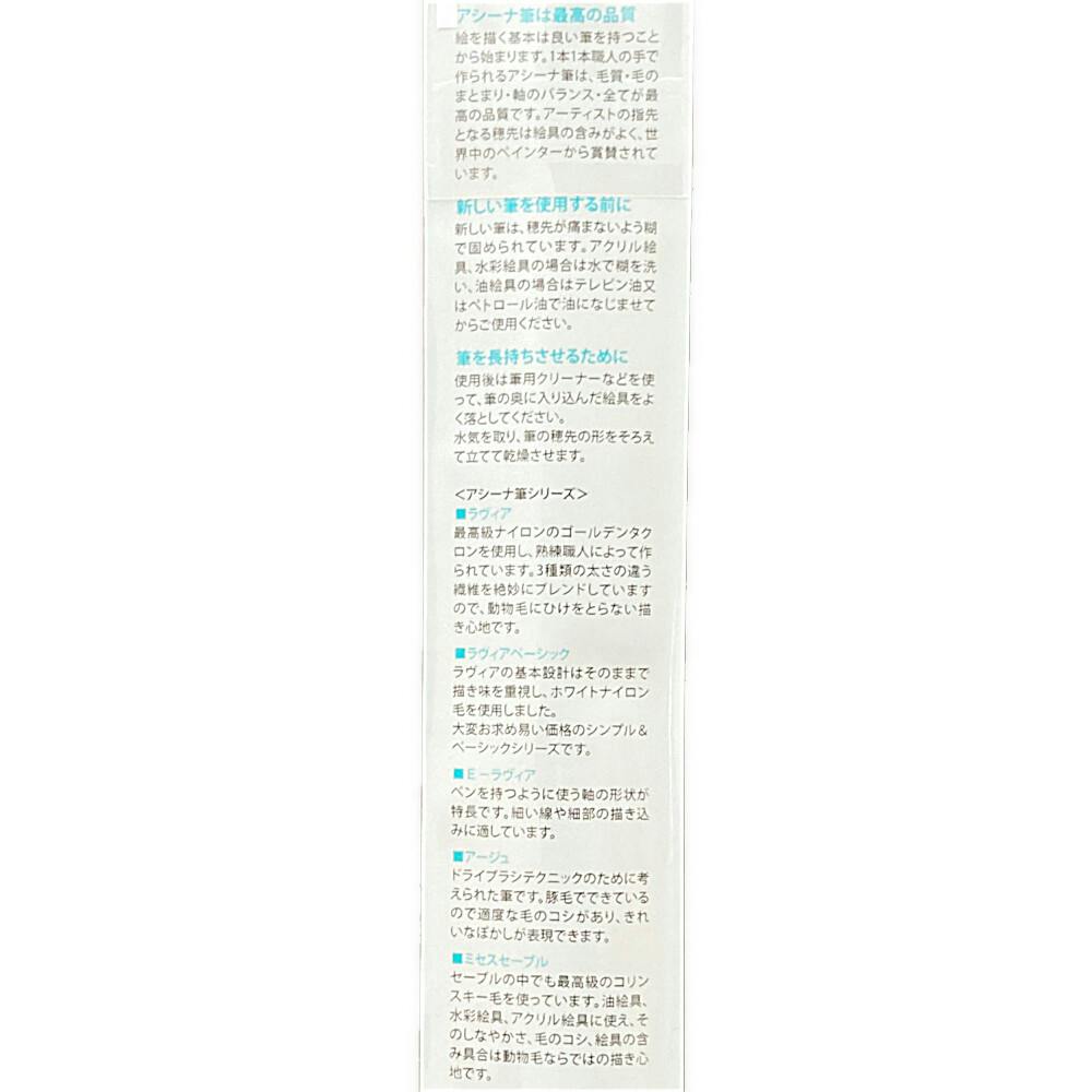 新しい筆を使用する前に/新しい筆は、穂先が痛まないよう糊で固められています。アクリル絵具、水彩絵具の場合は水で糊を洗い、油絵具の場合はテレピン油又はペトロール油で油になじませてからご使用ください。
