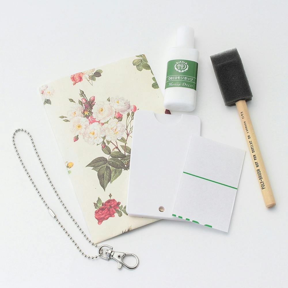 ●素材(パスケース)●モジポッジ●デコペーパー●スキージ●スポンジブラシS●説明書