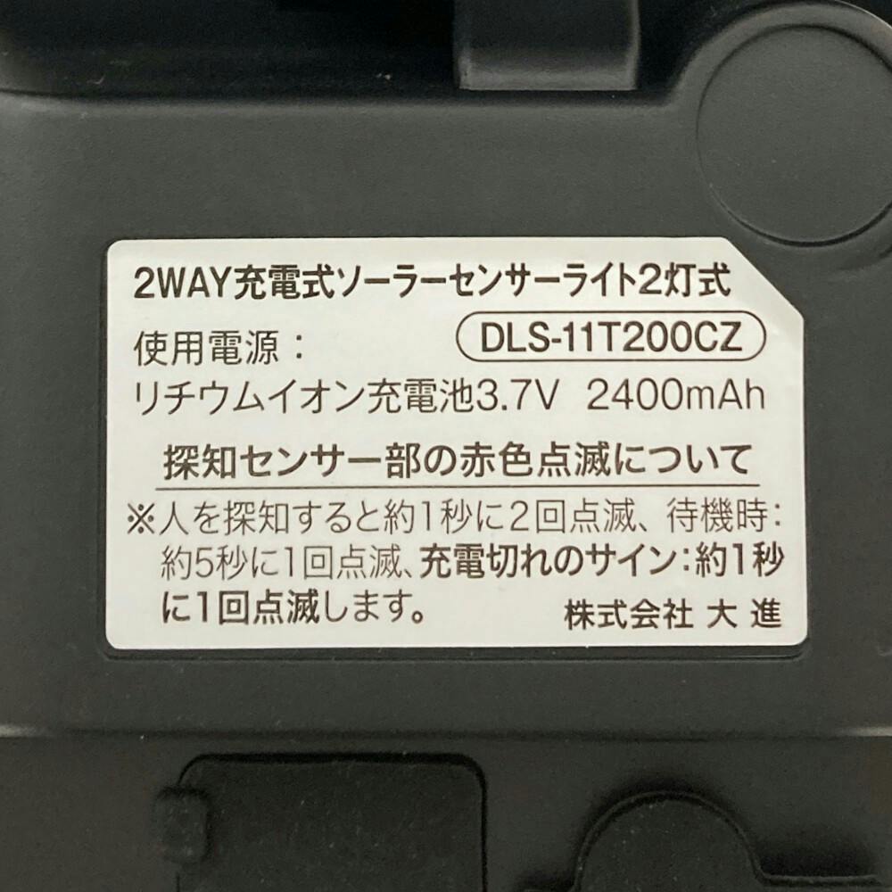 2WAY充電式センサーライト ソーラー式 2灯 DLS-11T200CZ 防犯 太陽光/USB充電式 赤外線探知 防雨構造 約600ルーメン