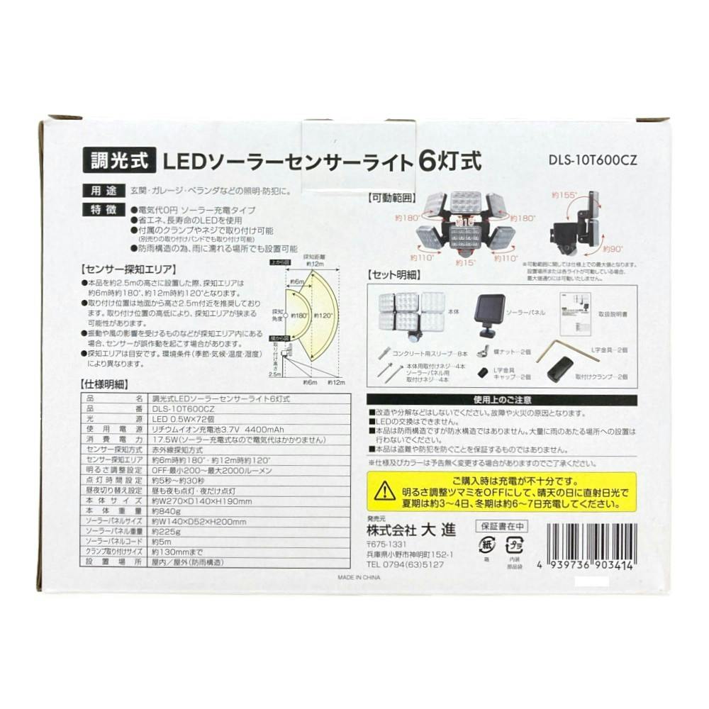 調光式LEDセンサーライト ソーラー式6灯 DLS-10T600CZ