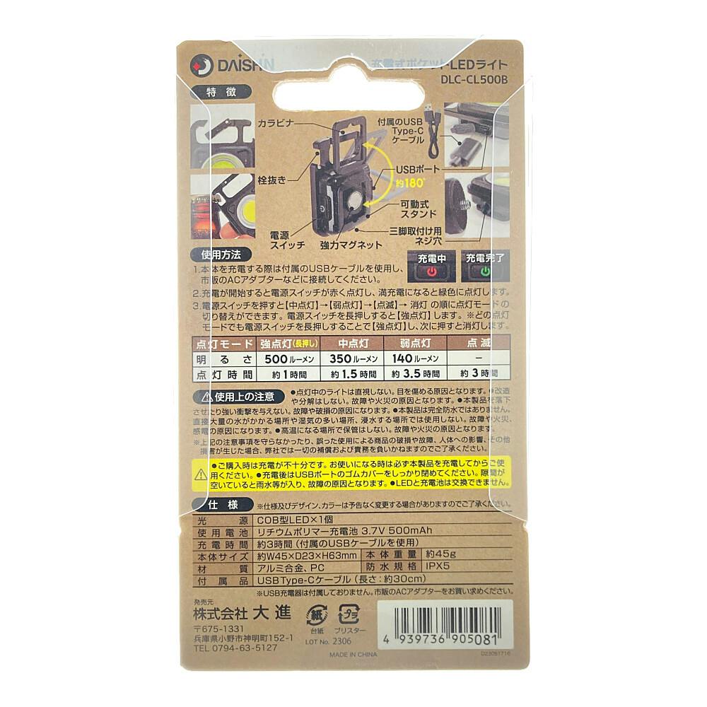 充電式ポケットLEDライト ブラック DLC-CL500B