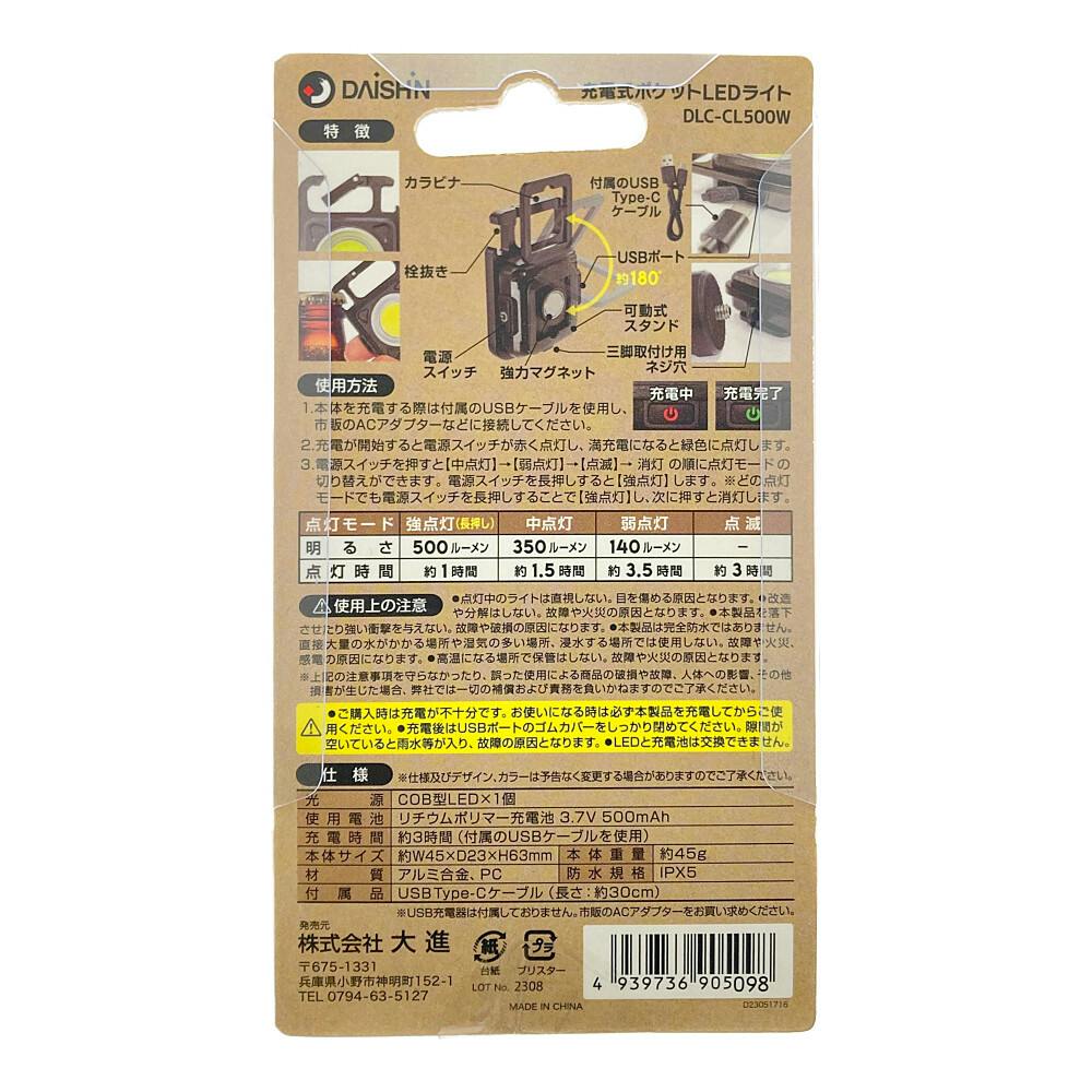 充電式ポケットLEDライト ホワイト DLC-CL500W