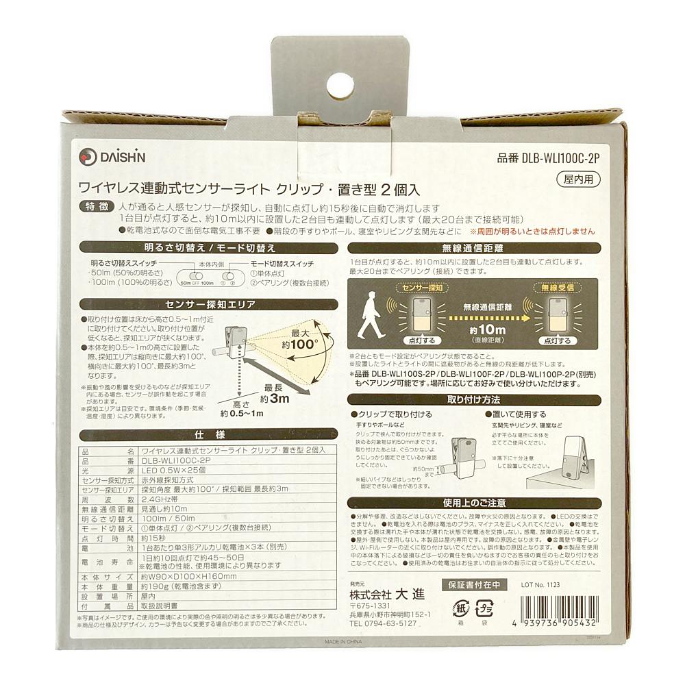 ワイヤレス連動式センサーライト クリップ・置き型2個入 DLB-WLI100C-2P