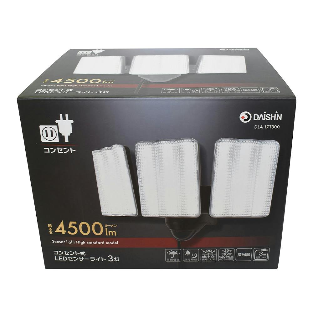 コンセント式LEDセンサーライト 3灯式 DLA-17T300