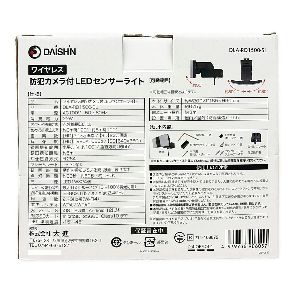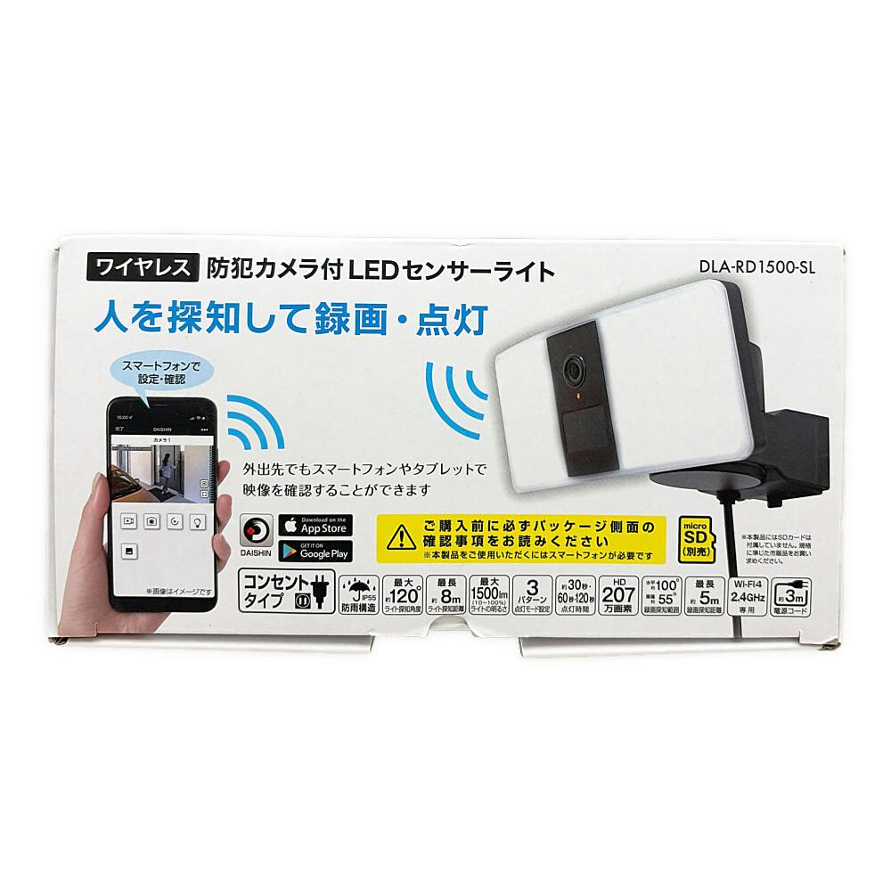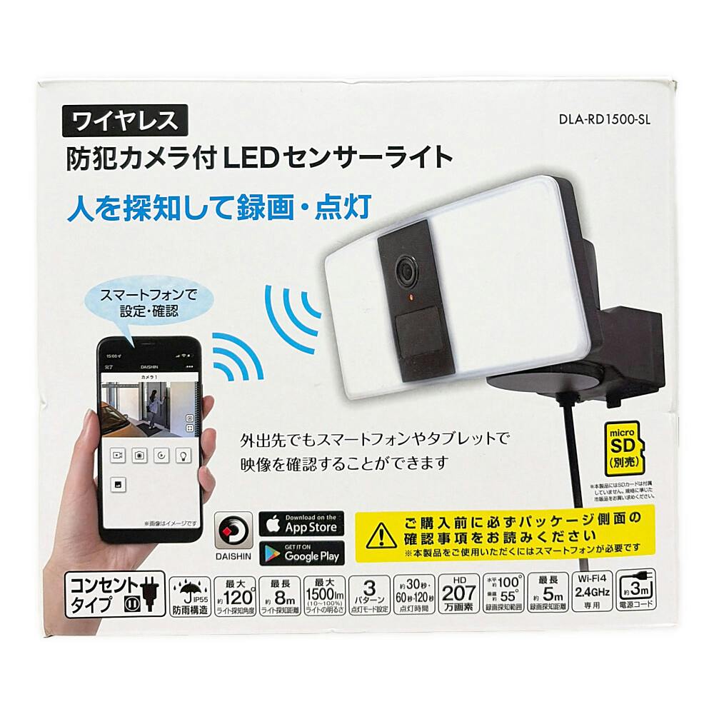 防犯カメラ付LEDセンサーライト 防犯カメラ 録画機能付きカメラ搭載 玄関・ガレージ設置 外出先スマホで映像確認可能 点灯時間3種切替可能