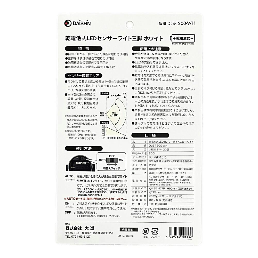 どこでもセンサーライト ホワイト DLB-T200-WH