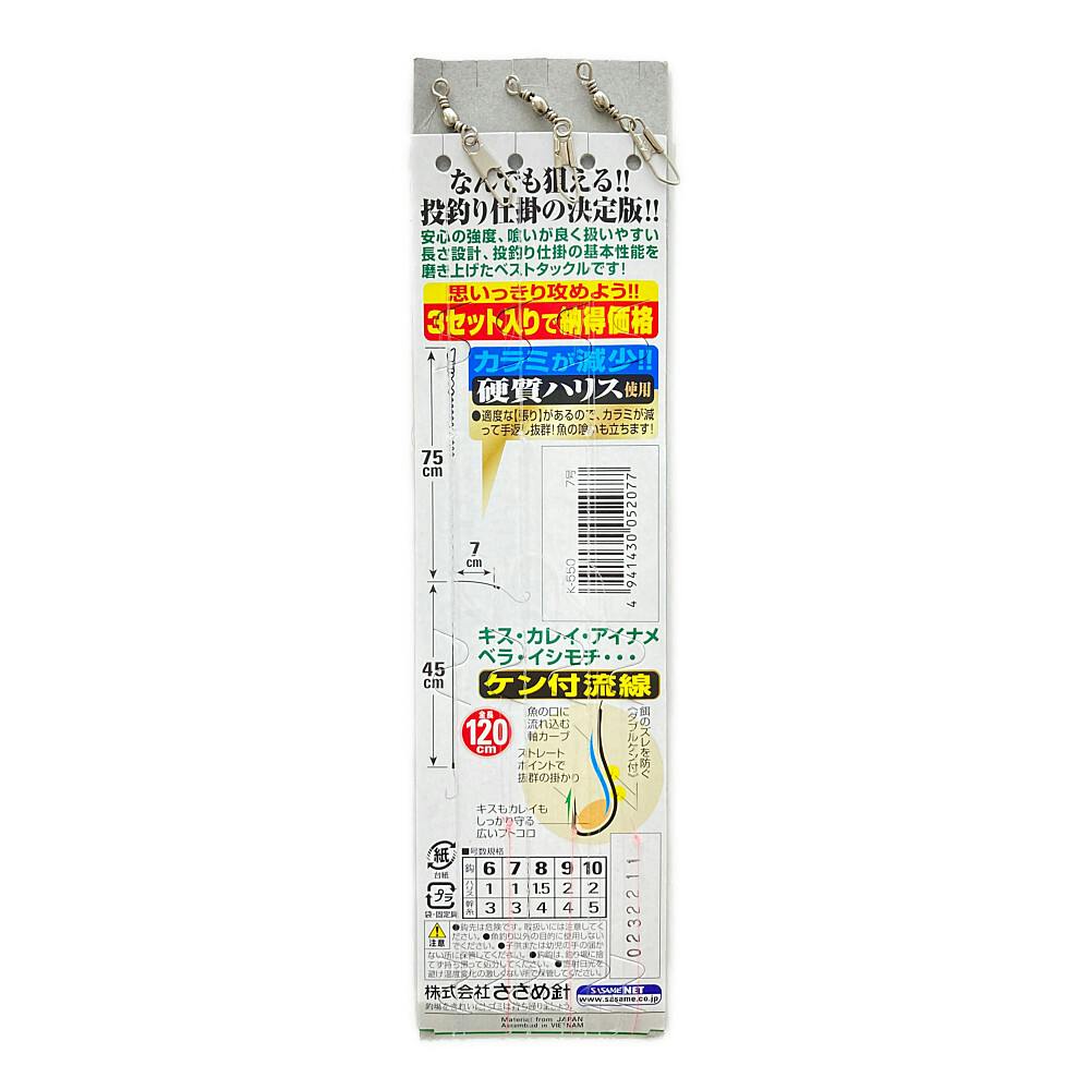 • ささめ針 投釣り2本鈎3セット K-550 7号