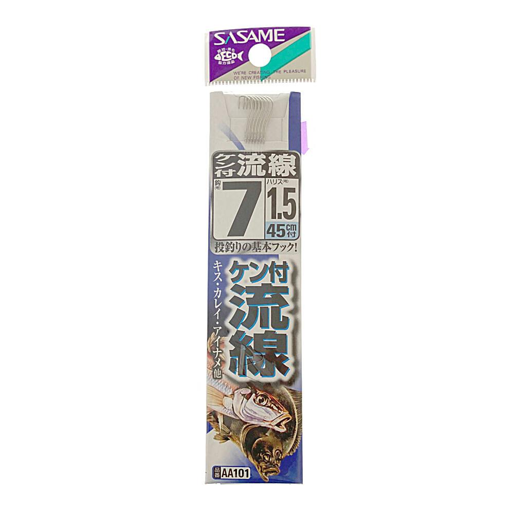 ささめ針 ケン付流線 糸付 白 AA101 7号
