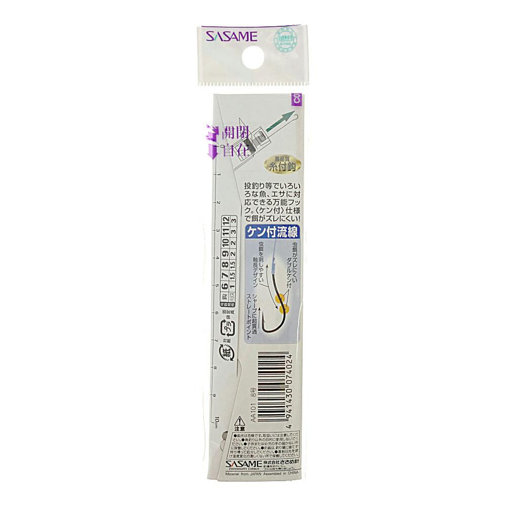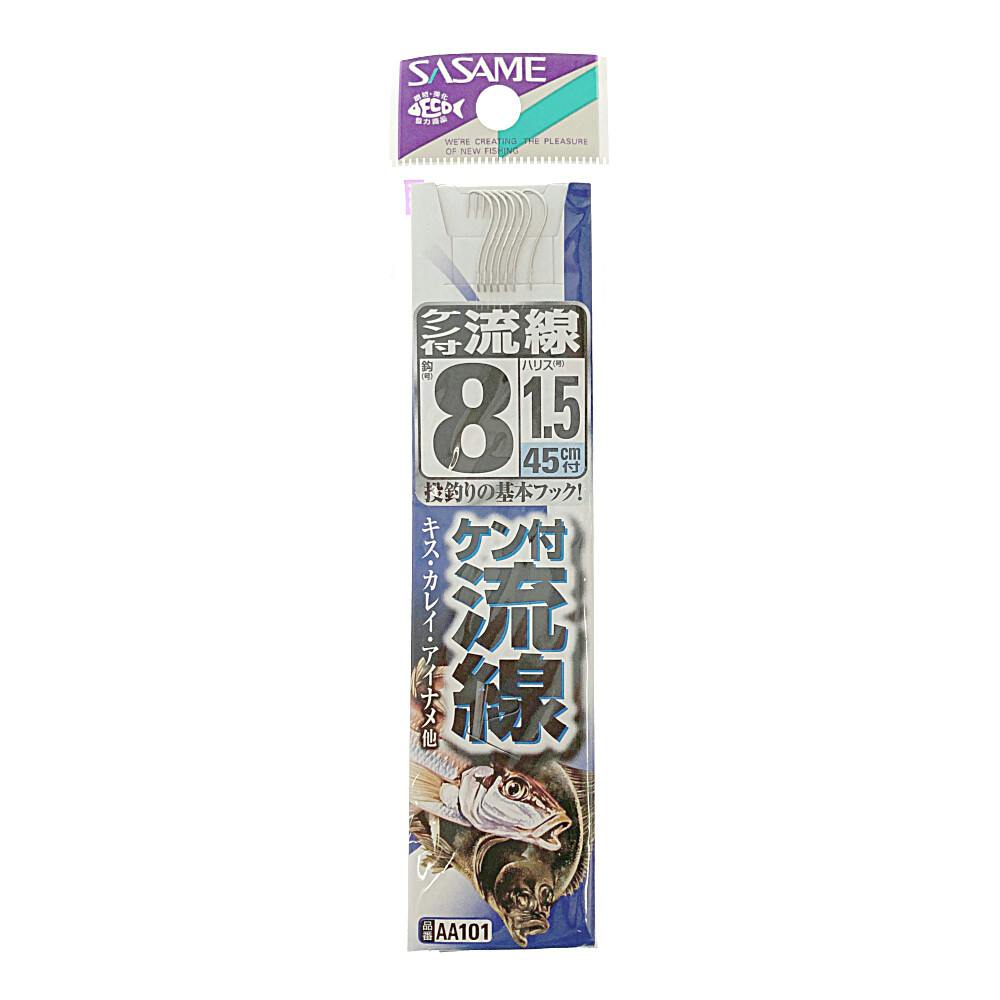 ささめ針 ケン付流線 糸付 白 AA101 8号