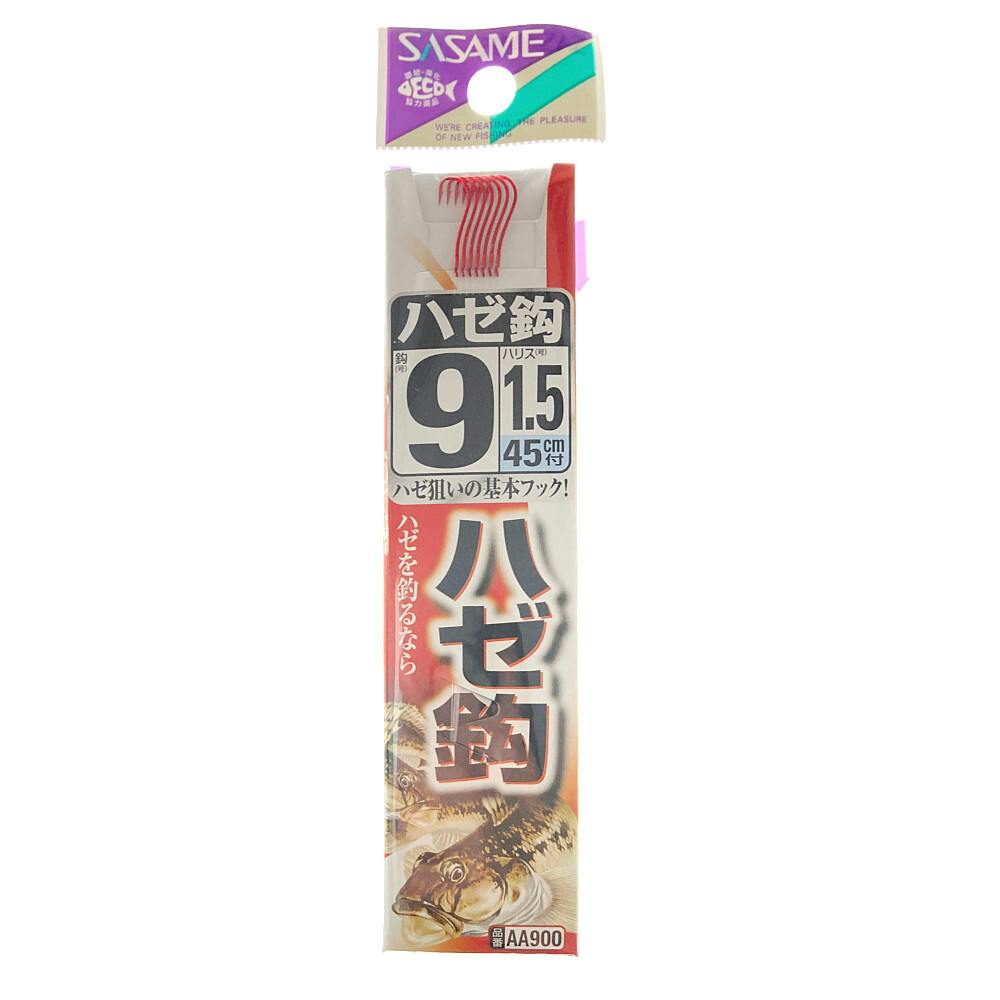 ささめ針 ハゼ鈎 糸付 赤 AA900 9号