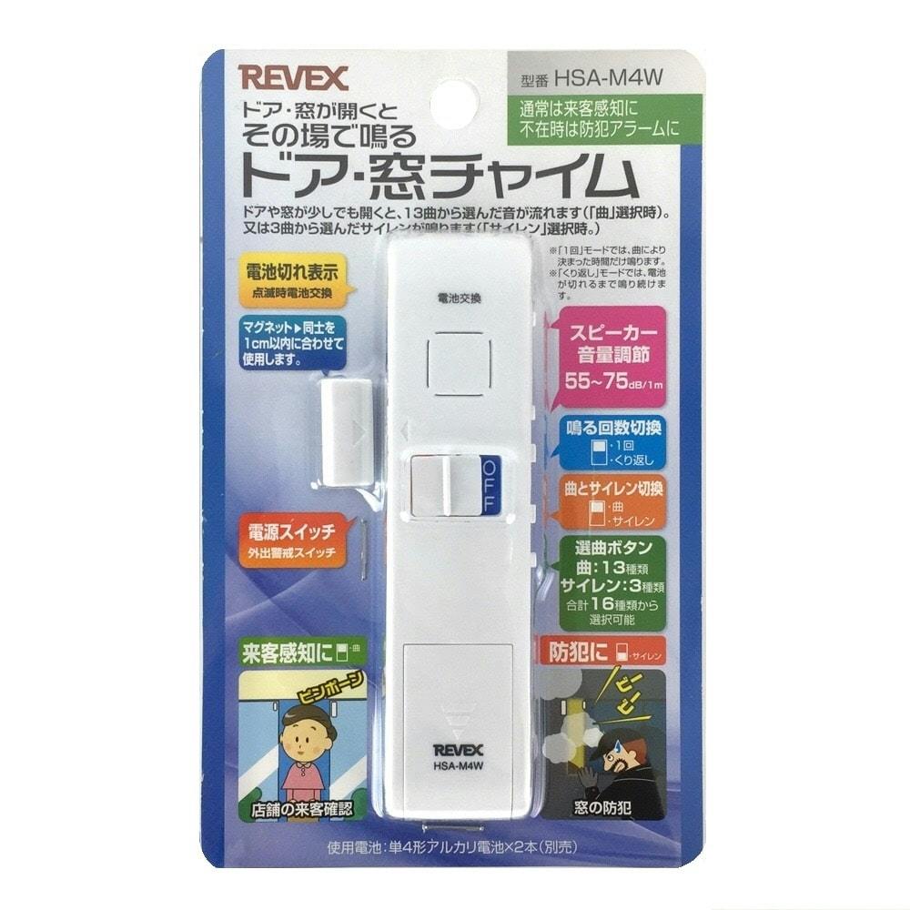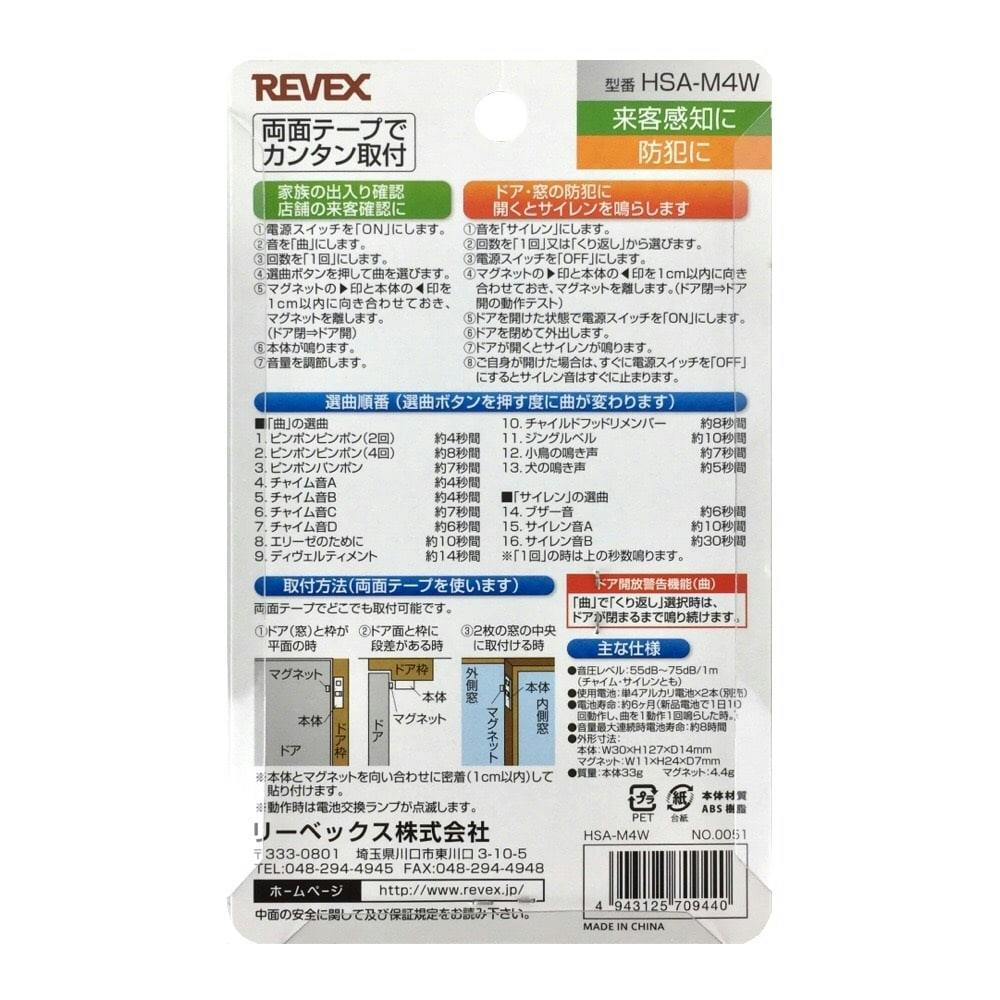 リーベックス ドア・窓チャイム HSA-M4W 防犯 ドア・窓開閉感知 マグネットセンサー 両面テープ簡単取付 単4アルカリ電池2個式