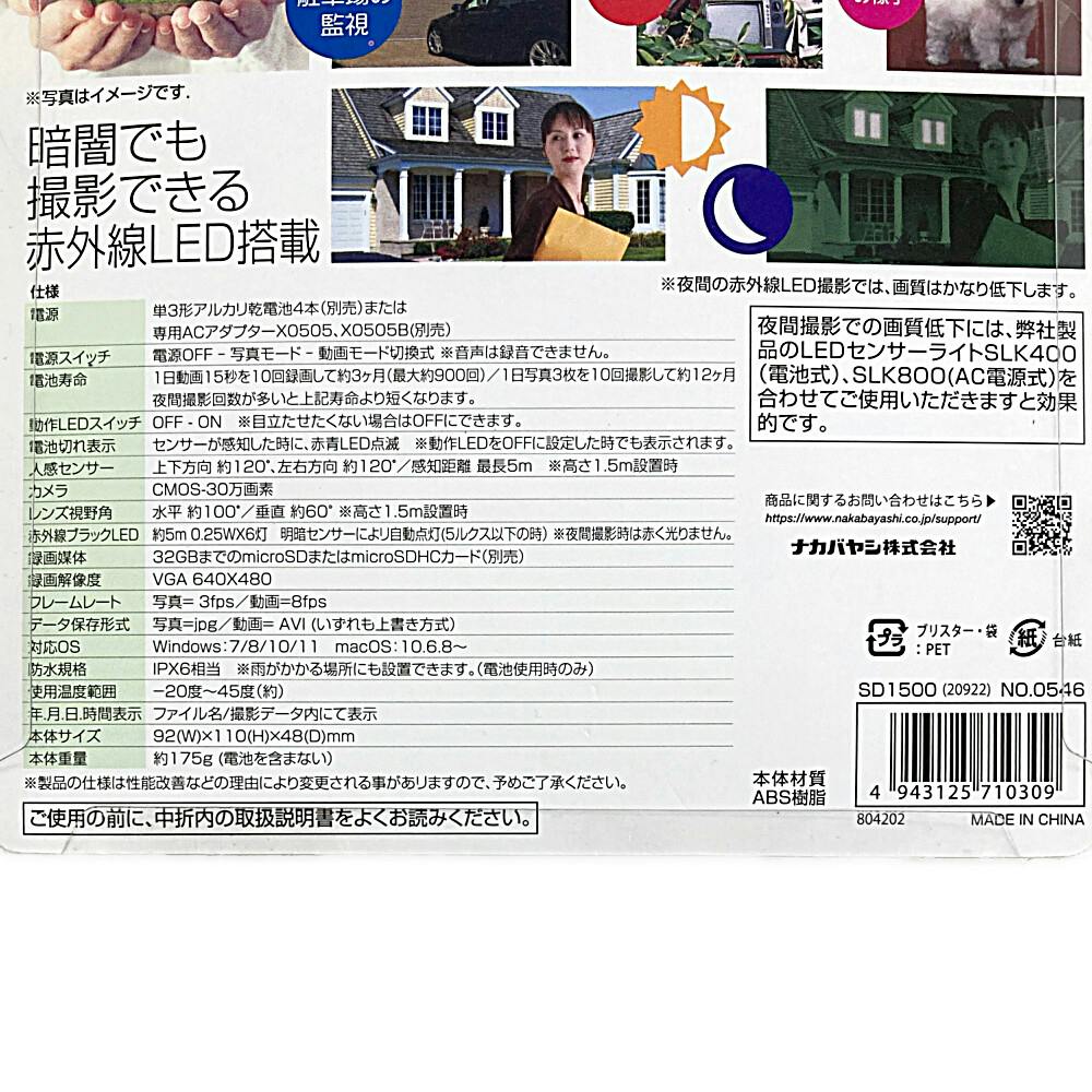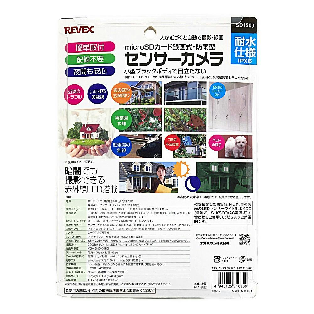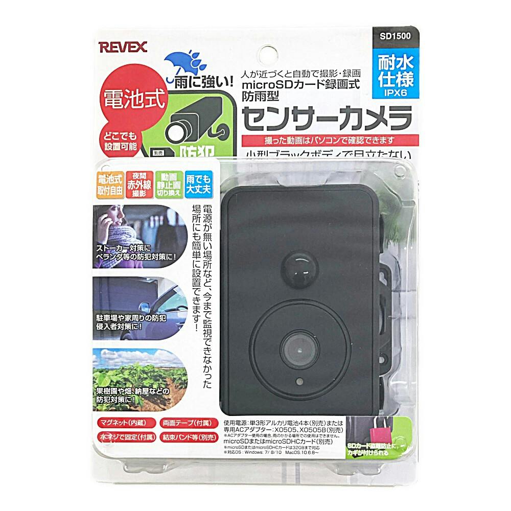 リーベックス 防雨型センサーカメラ SD1500 防犯カメラ 電池式 防水規格IPX6相当 動画モード静止画モード選択可能 人感センサー 防雨