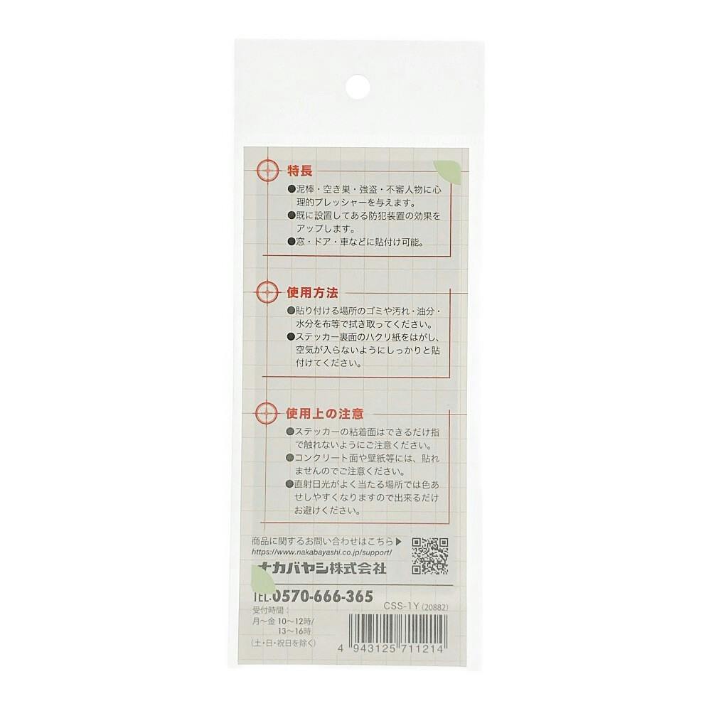 防犯ステッカー横 黄色 中 CSS-1Y