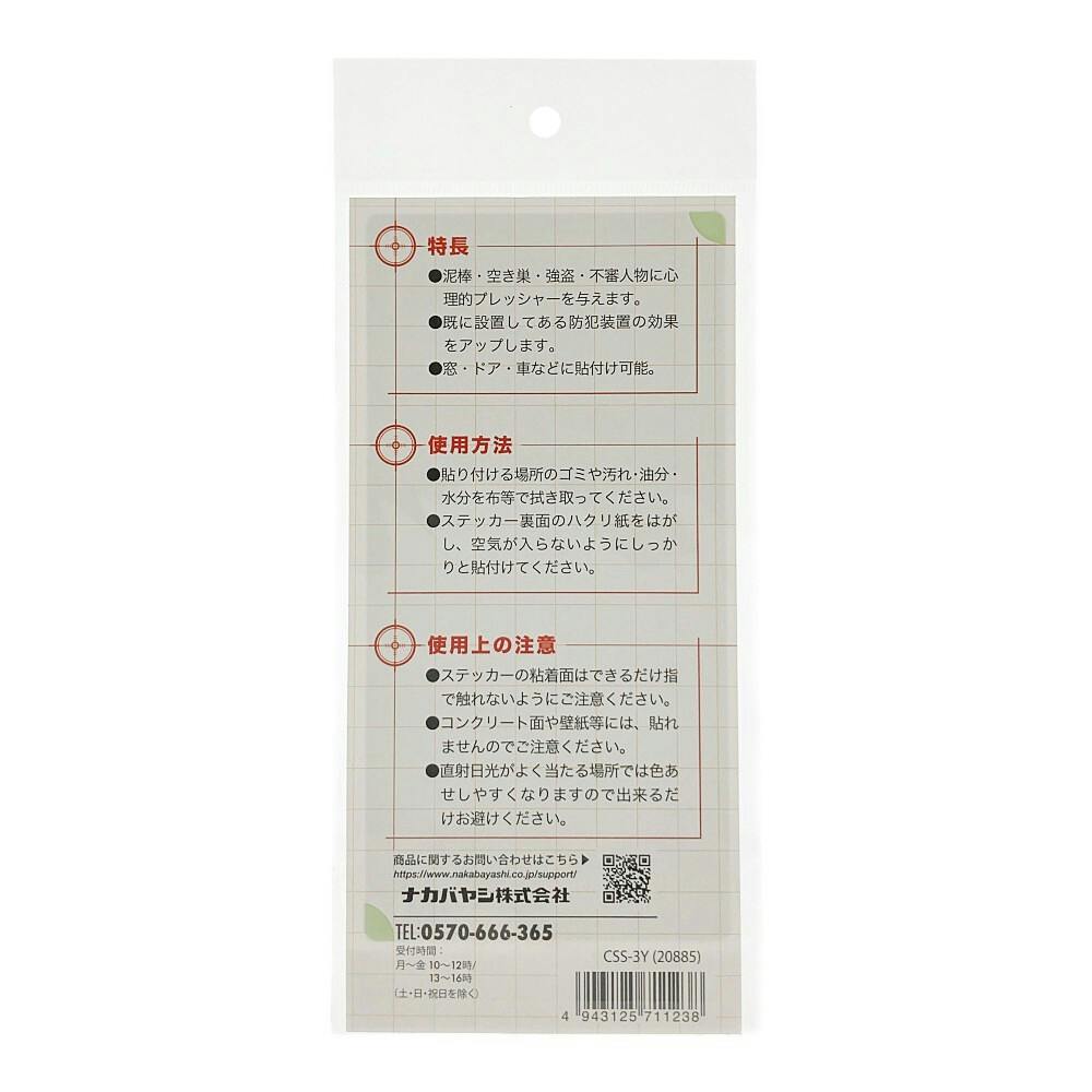 防犯ステッカー縦 黄色 中 CSS-3Y