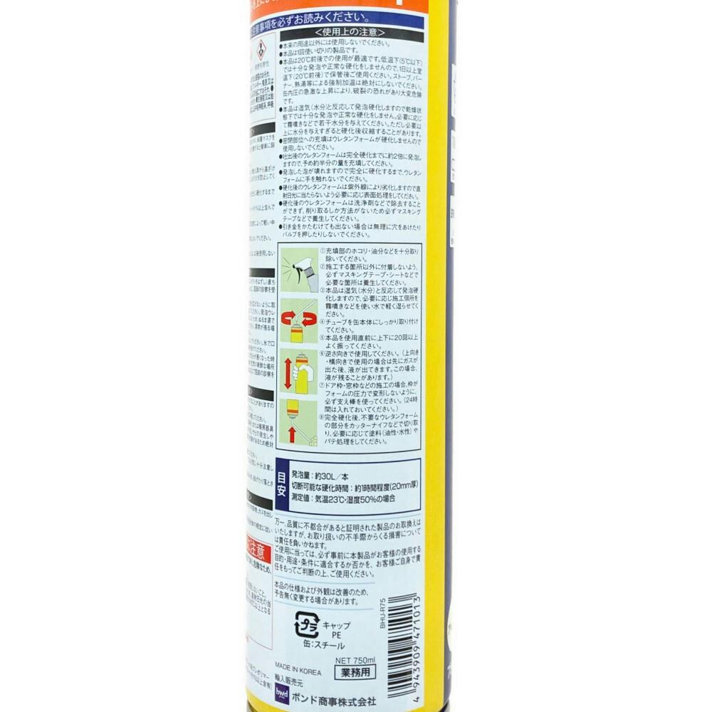 ●カラー/アイボリー ●目安/発泡量:約30L/本、切断可能な硬化時間:約1時間程度(20mm厚)、測定値:気温23℃・湿度50%の場合 ●火気厳禁 第四類第四石油類 520mL 危険等級3 ●充てんガス/LPG、DME ●業務用