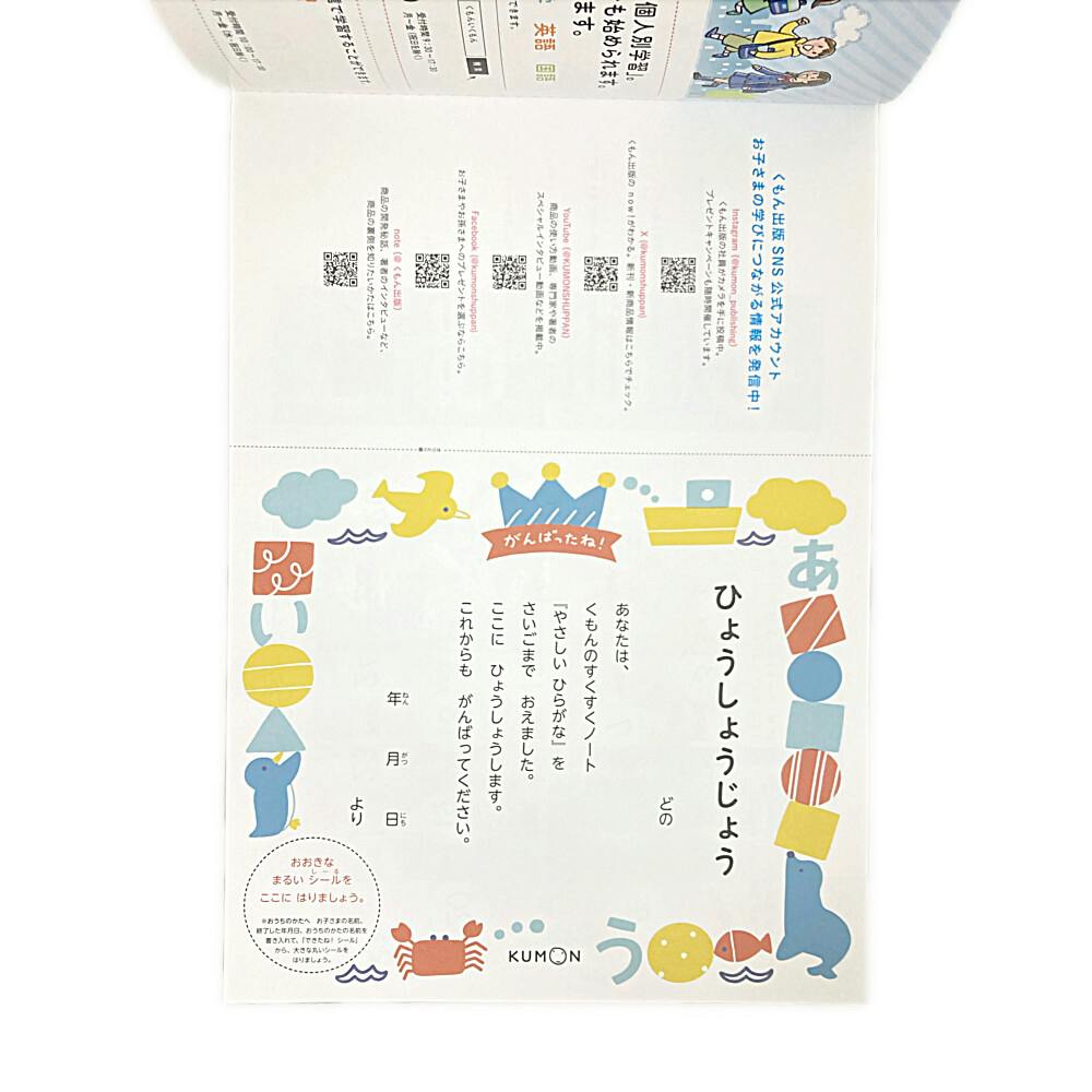 • くもん やさしいひらがな