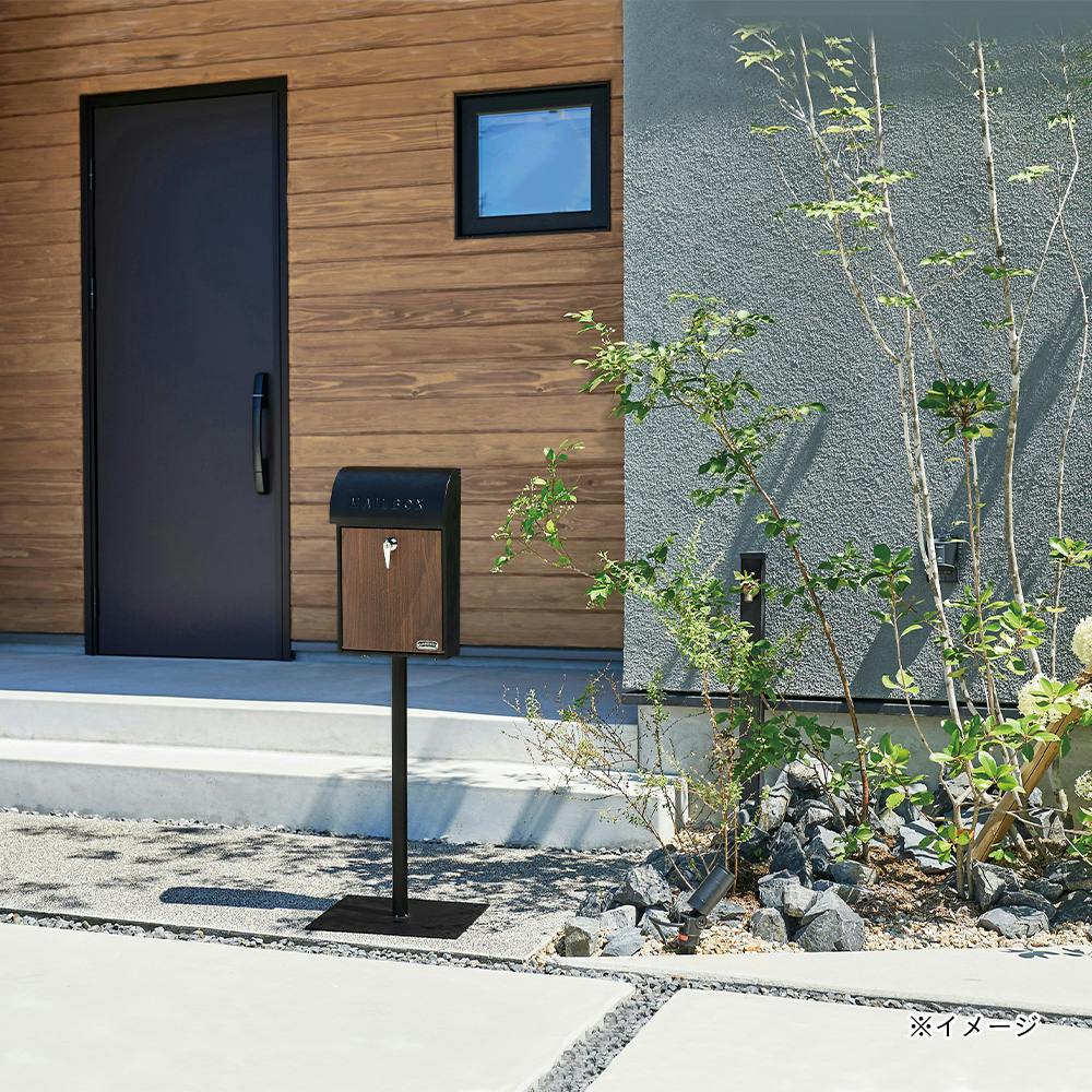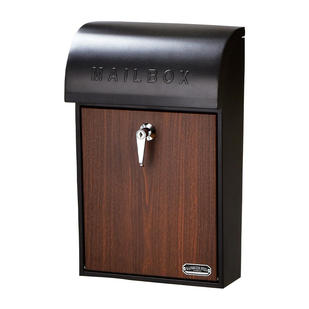 壁掛けポスト GALVA ブラック&ウォールナット 幅28.5cm 高さ45.5cm 奥行15.5cm