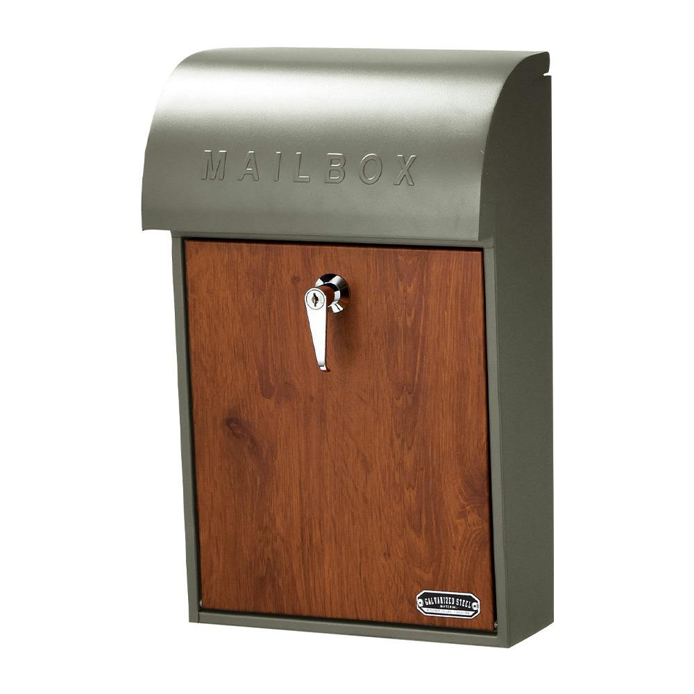 壁掛けポスト GALVA グレー&チーク 幅28.5cm 高さ45.5cm 奥行15.5cm
