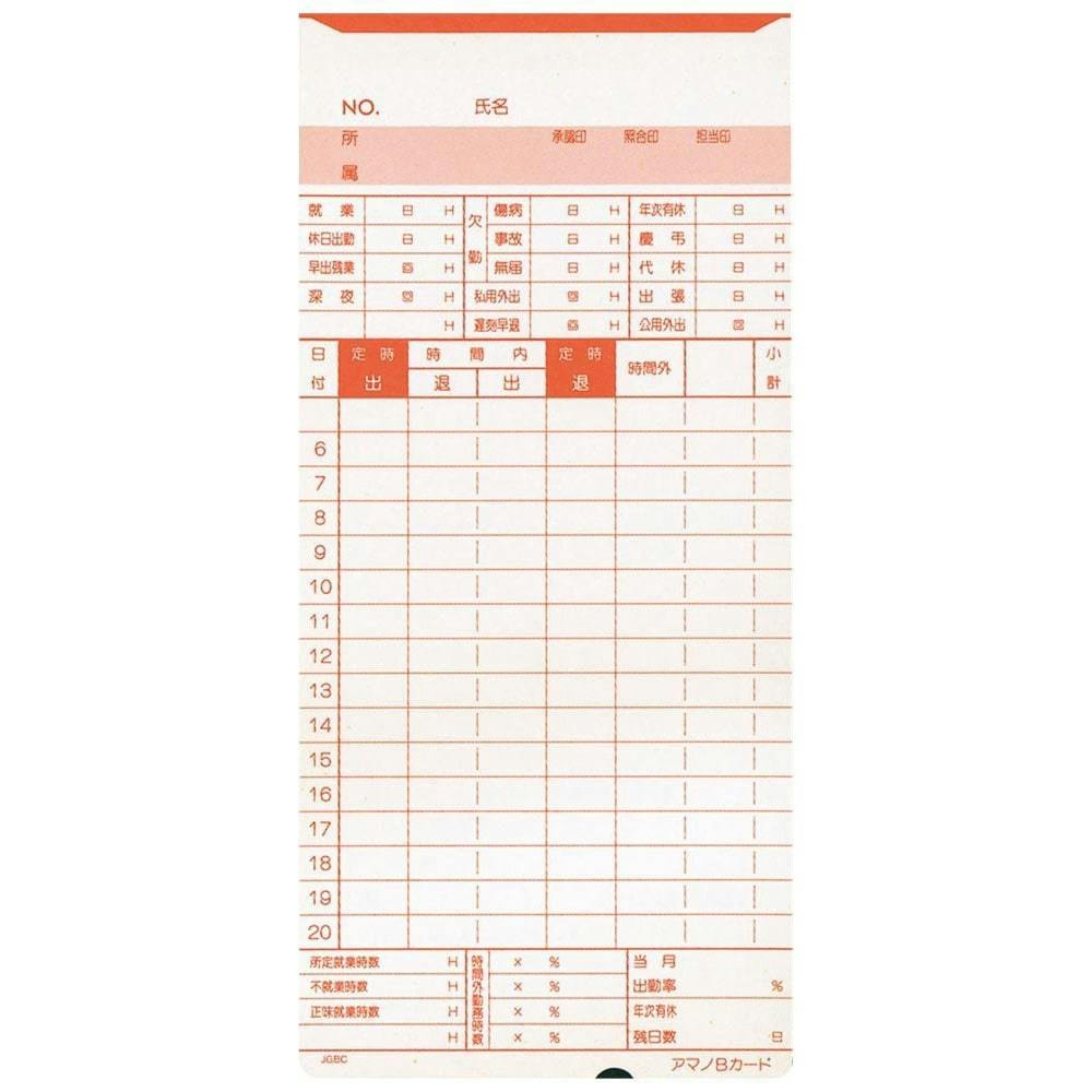 アマノ タイムカード Bカード 20日締め/5日締め 100枚入