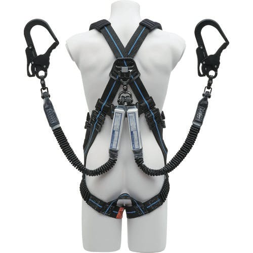 【CAINZ-DASH】基陽 ハーネス型墜落制止具 じゃばらストレッチハーネスXV型+2丁掛けランヤード セット オールアルミフック+伸縮性ランヤード 駕王 青ライン XVGBLTPGK2【別送品】
