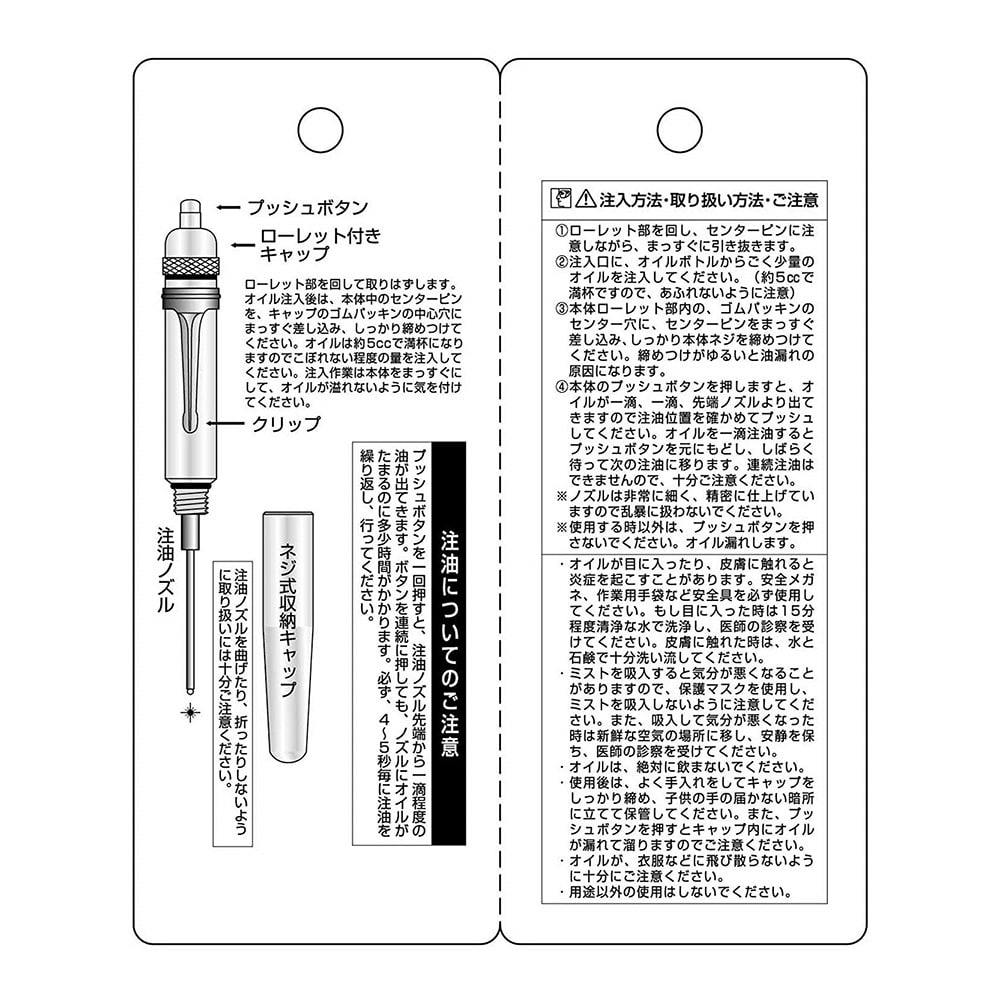 ●切削用オイル、ミシンオイルなどの粘着度のないサラリとしたオイル用です。●粘着度のあるオイル、グリスなどは使用できません。