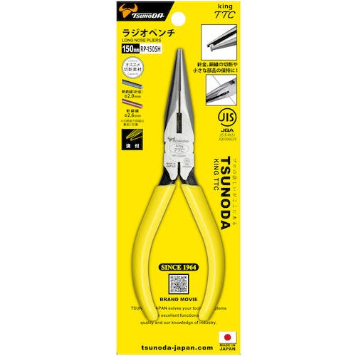 【CAINZ-DASH】ツノダ KingTTC ラジオペンチ JIS 刃部1ツ穴付バネ付 RP-150SH【別送品】