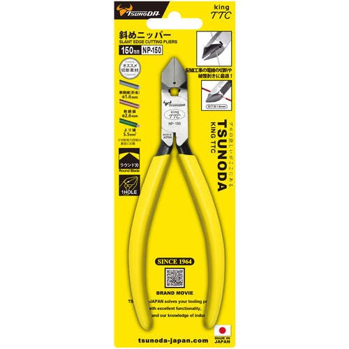 【CAINZ-DASH】ツノダ KingTTC 斜めニッパー 刃部1ツ穴 NP-150【別送品】
