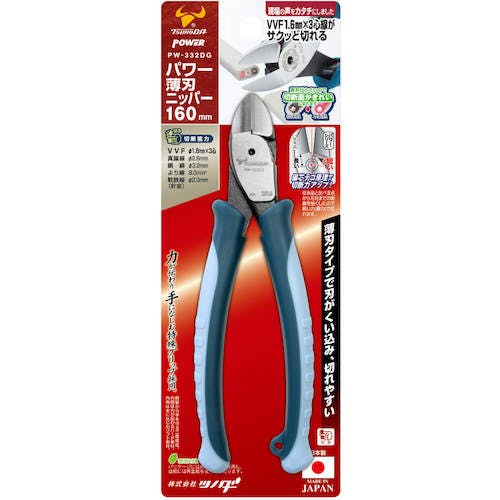 【CAINZ-DASH】ツノダ POWER 薄刃ニッパー 全長172mm PW-332DG【別送品】