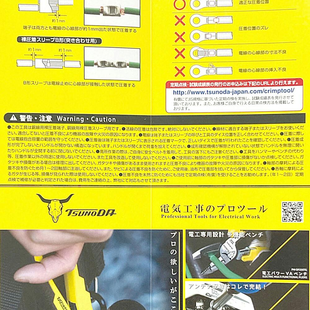 ツノダ TTC 圧着工具 銅線用裸圧着端子・スリーブ(P・B)用 TP-8