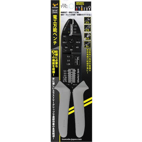 【CAINZ-DASH】ツノダ 電工万能ペンチ AP-02(絶縁端子用・裸圧着端子両用) AP-02【別送品】