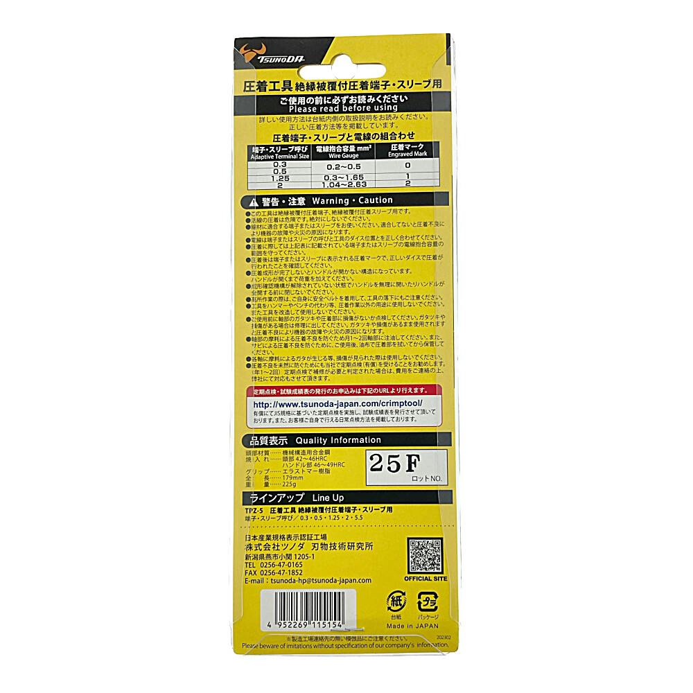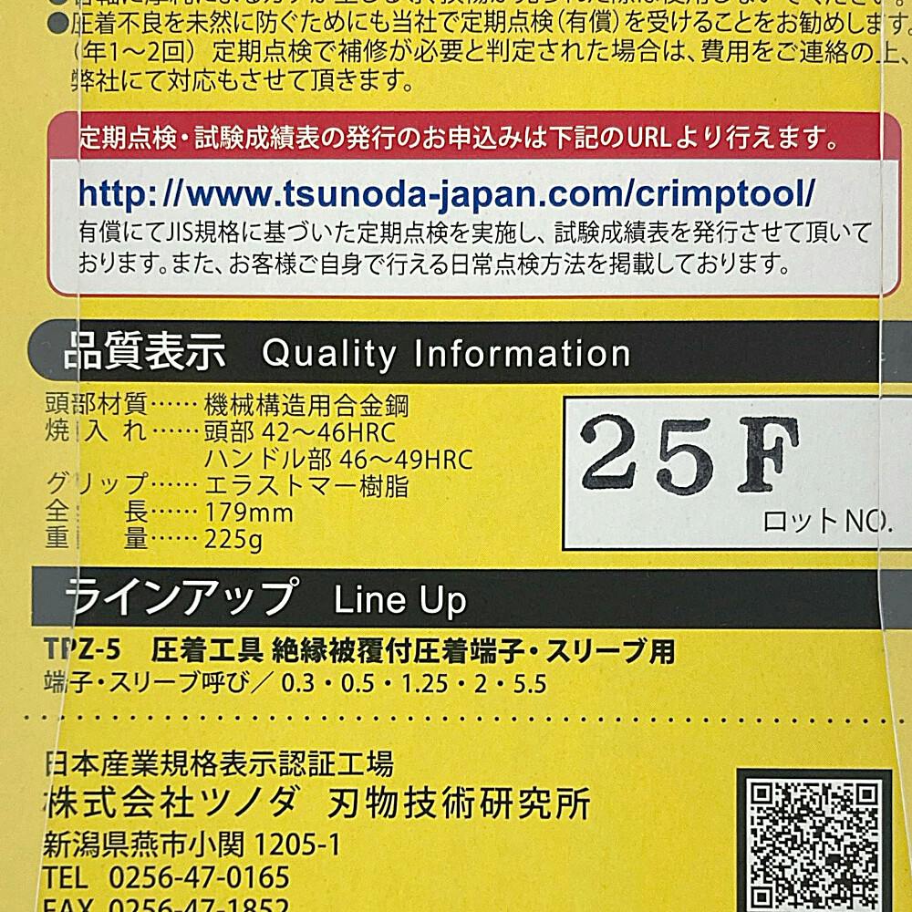 ツノダ TTC 圧着工具 絶縁被覆付圧着端子・スリーブ用 TPZ-2