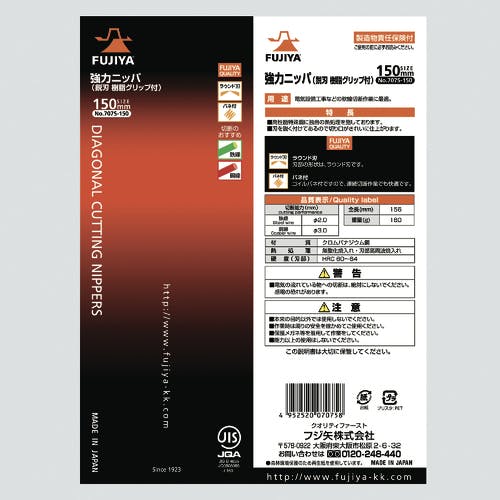 • 【CAINZ-DASH】フジ矢 強力ニッパ(鋭刃バネ付)150mm 707S-150【別送品】