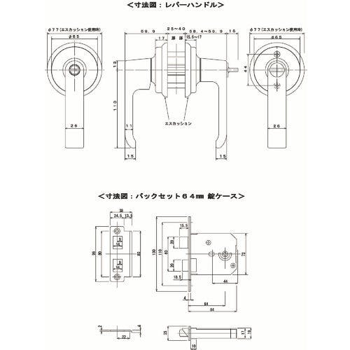 【CAINZ-DASH】大黒製作所 LS-640 レバーハンドル取替錠 B/S64 鍵付 AGLS640000【別送品】