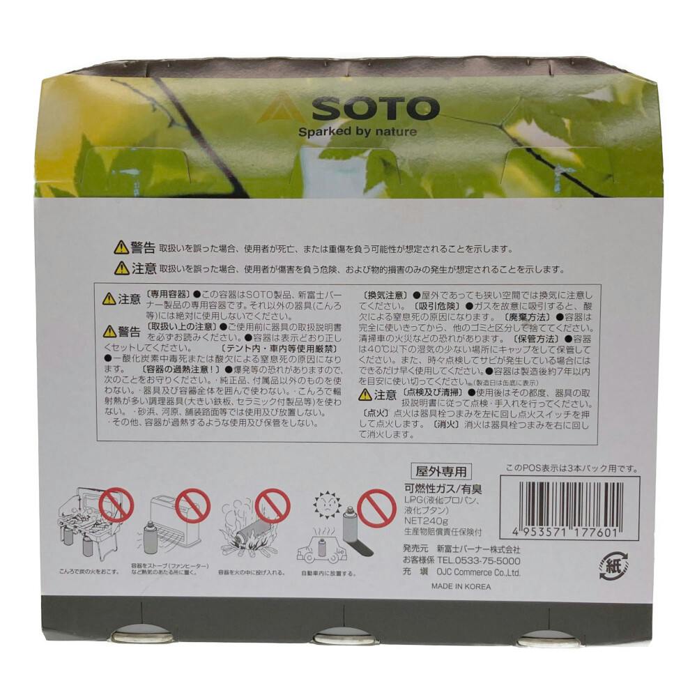 ●この容器はSOTO製品、新富士バーナー専用容器です。それ以外の器具(こんろ等)には絶対に使用しないでください。●ご使用前に器具の取扱説明書を必ずお読みください。●容器は表示どおり正しくセットしてください。等
