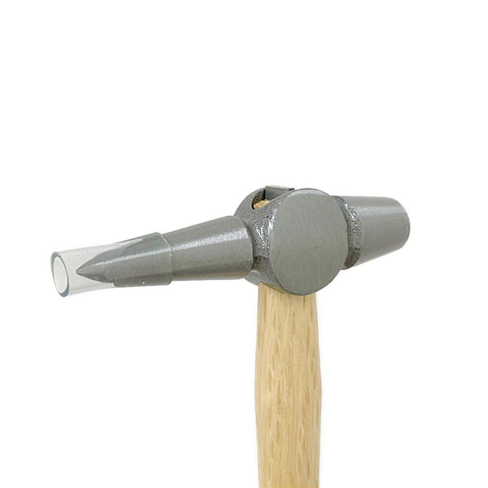 普通の金鎚に比べ、柄が長く、届かないような部分も叩けます。