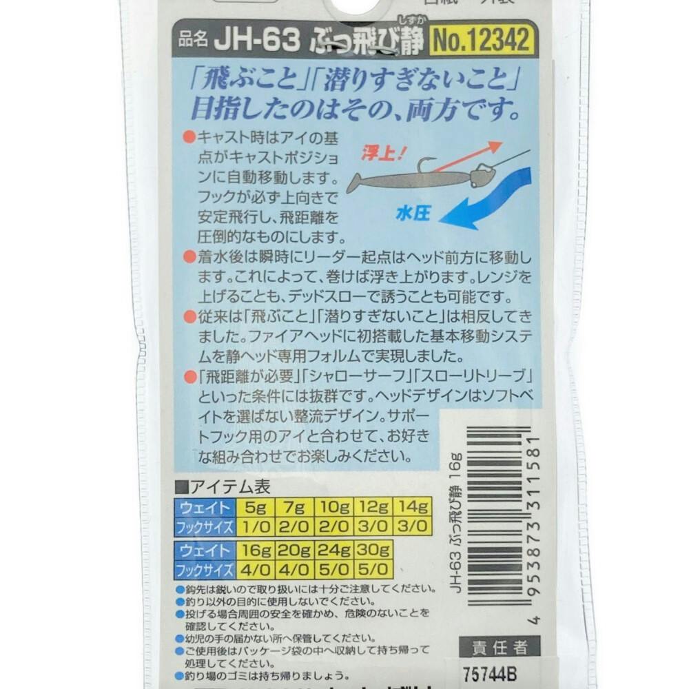 ●ウェイト:16g ●フックサイズ:4/0 ●キャスト時はアイの基点がキャストポジションに自動移動します。フックが必ず上向きで安定飛行し、飛距離を圧倒的なものにします。●ヘッドデザインはソフトベイトを選ばない整流デザイン。など