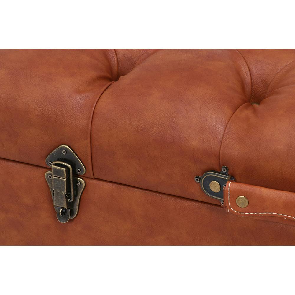 トランク型の収納付きスツール。ガタつき調整ができるアジャスター付き。