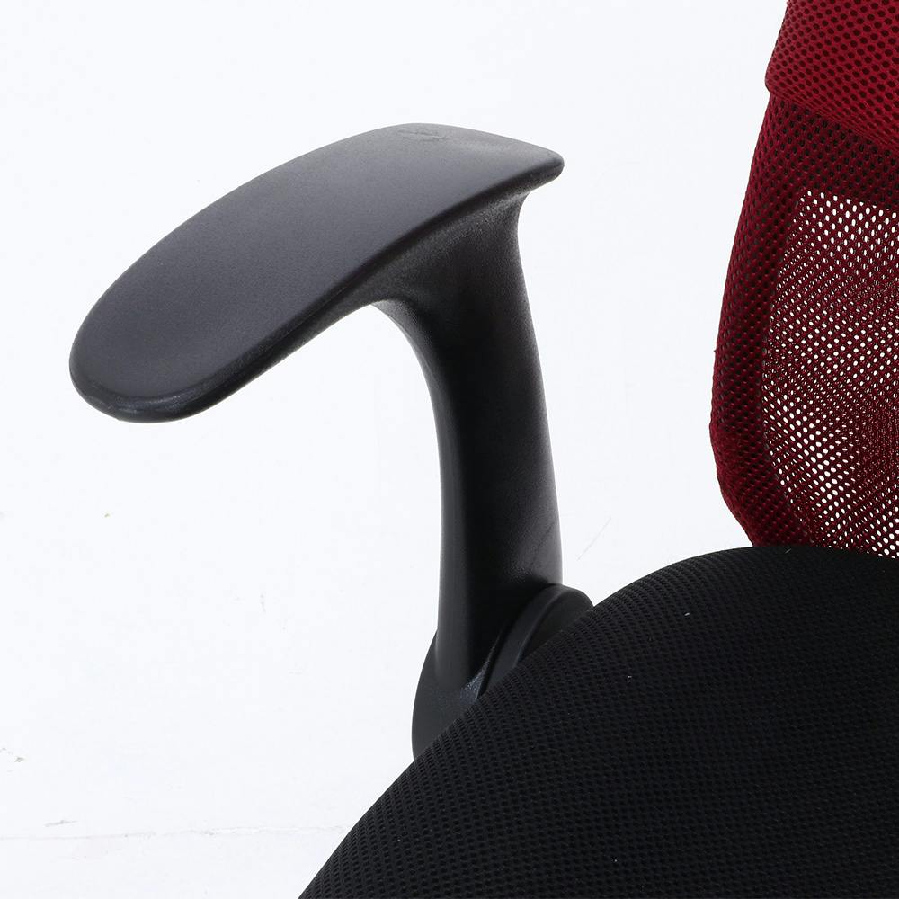 ヘッドレストとランバーサポートが付いたシンプルデザインのオフィスチェア。アームが上がるから省スペースでチェアをデスクに収納可能。