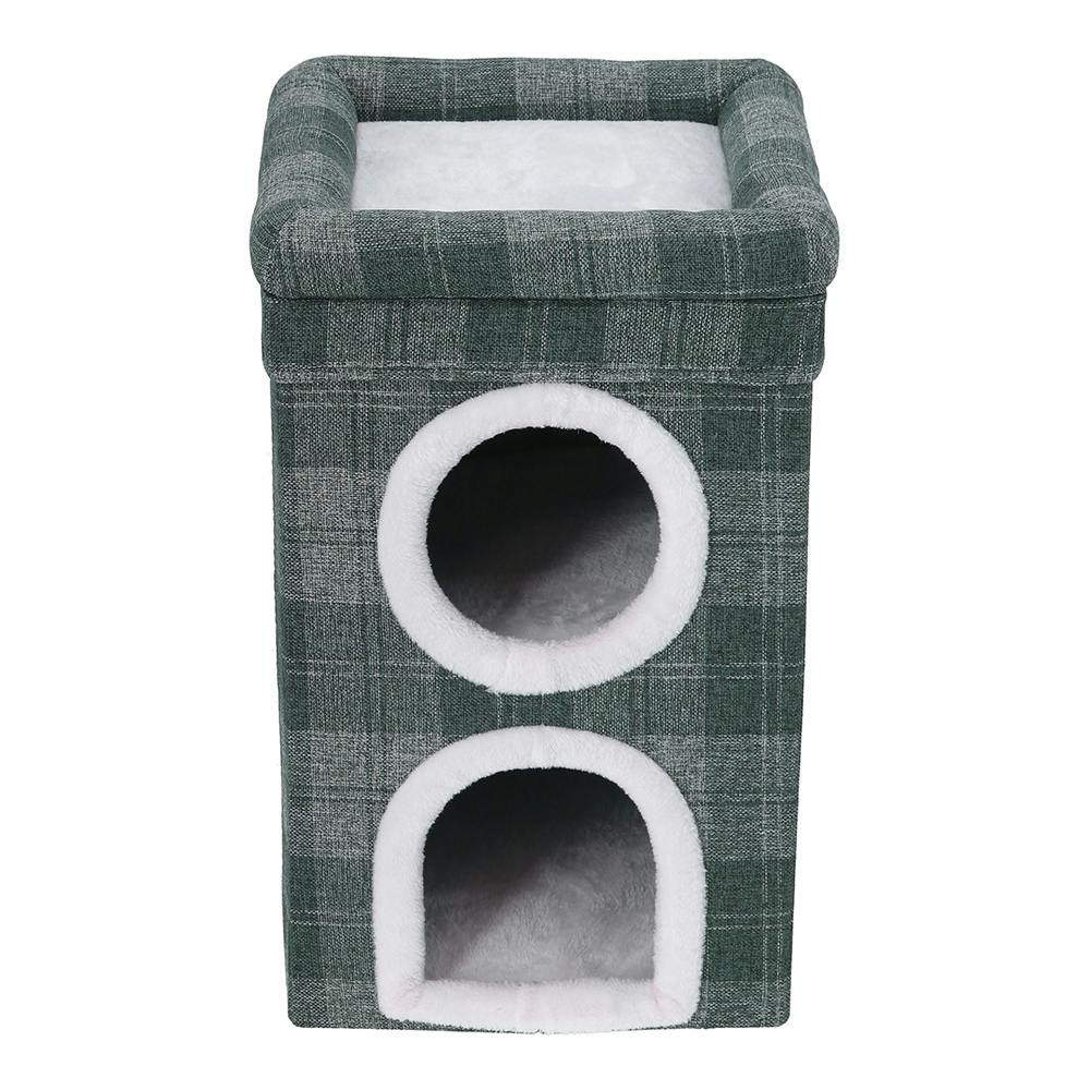 上段と下段の部屋が分かれた2段式のペットハウス。天井にも寝ることが出来るクッション付き。天井だけを取り外して単品のクッションとしても使用可能。