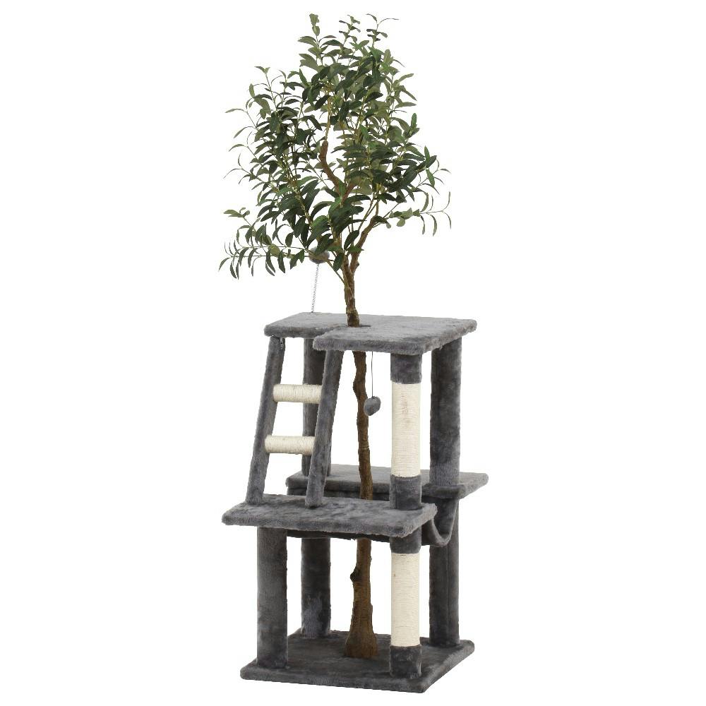 フェイクグリーンを組み合わたツリーハウスの様なキャットタワー。お部屋のインテリアとしてもお役立ち。
