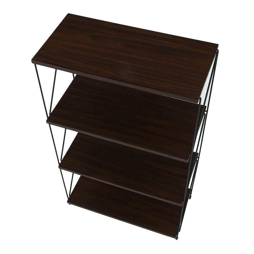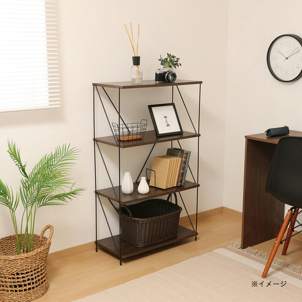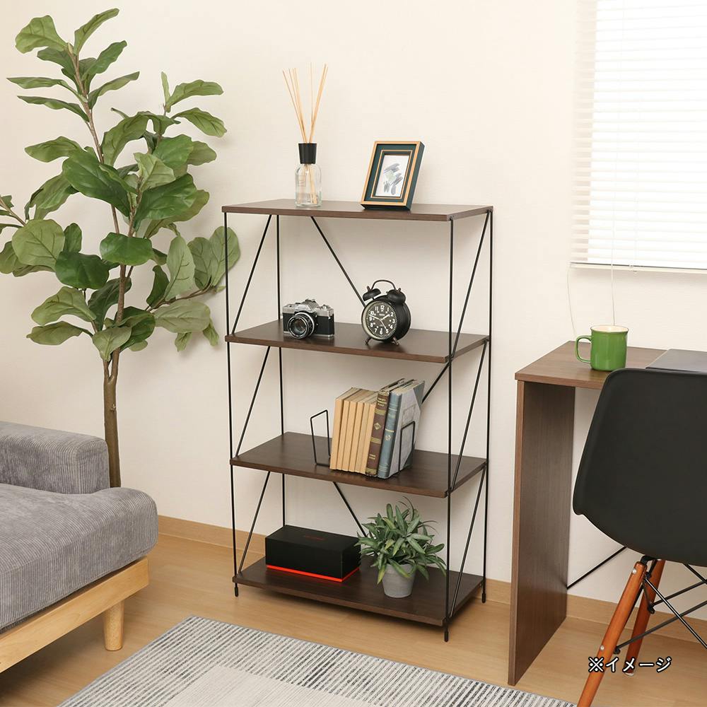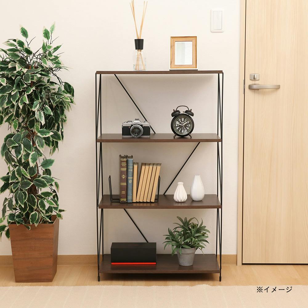 木目調の棚板とワイヤーフレームを組み合わせたスタイリッシュデザインのラック。工具不要で簡単組立式。