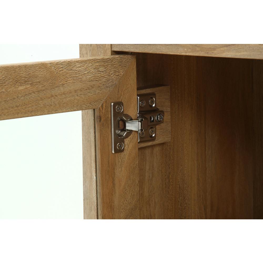 外からボルト穴が見えない完成品風デザインのリビングボード。棚板は内容物に応じて高さ調整が可能。