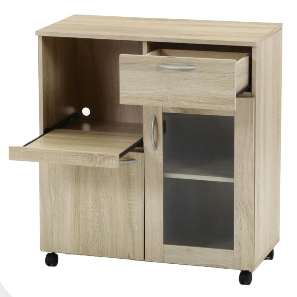 収納力が高い移動に便利なキャスター付きキッチンワゴン。炊飯器用のスライド棚付き。
