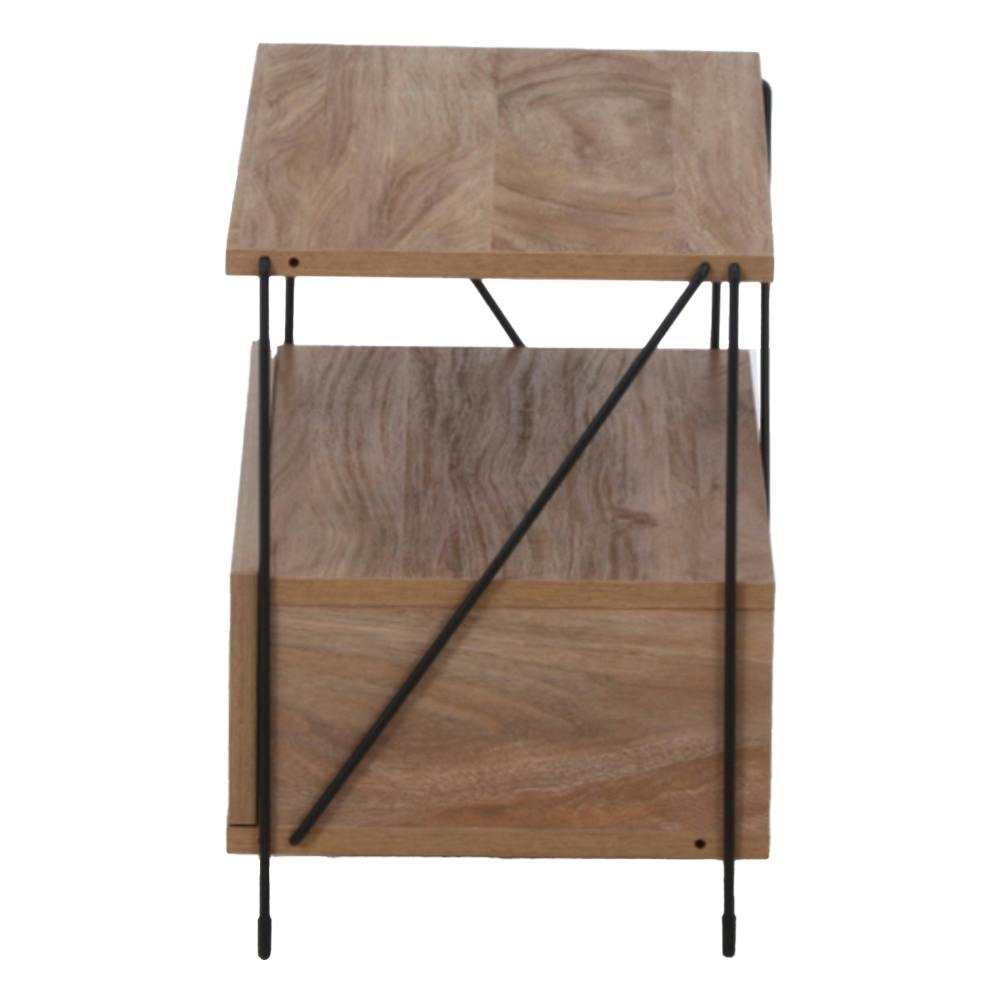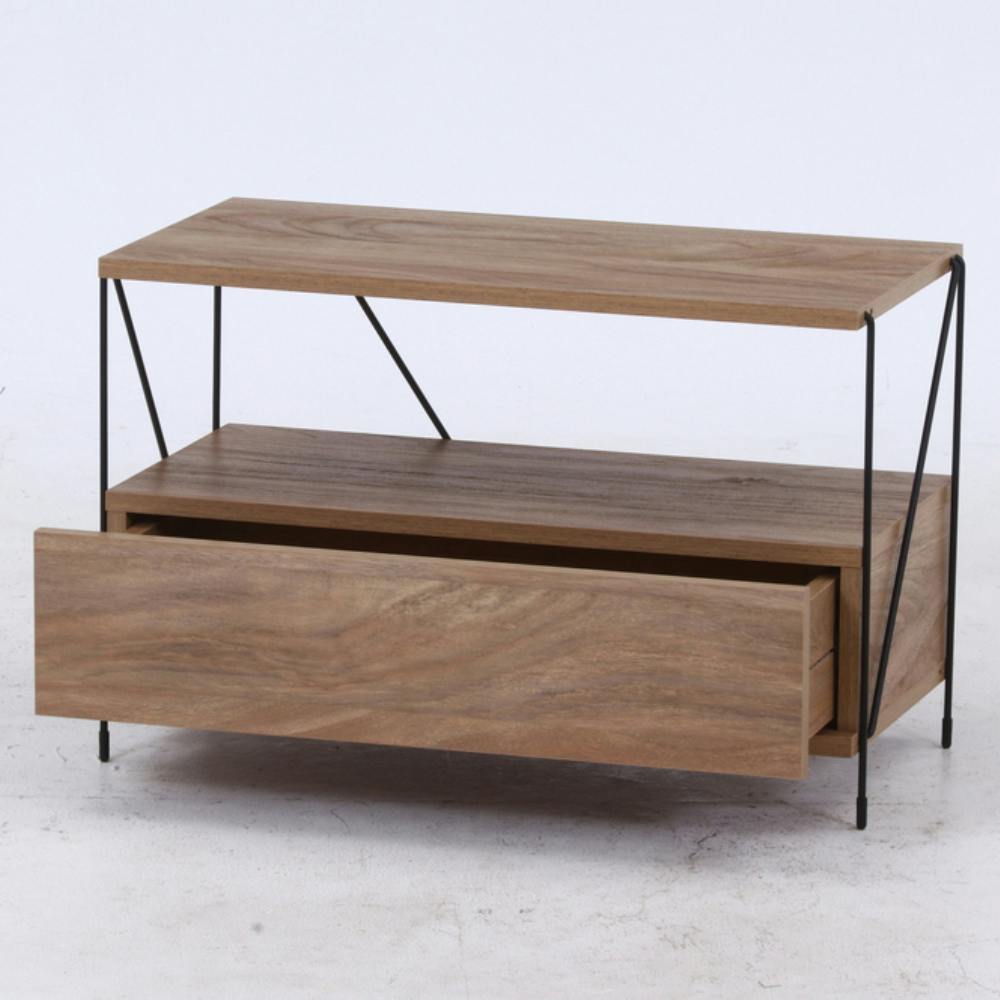 木目調の棚板とワイヤーフレームを組み合わせたスタイリッシュデザインの小型TV用テレビラック。工具不要で簡単組立式。