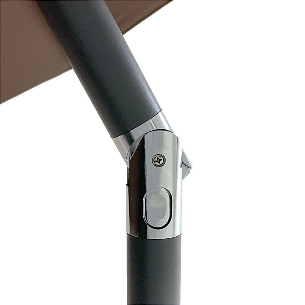 開閉が楽なクランク式のアルミ製パラソル。角度調整が出来るチルト機能付き。