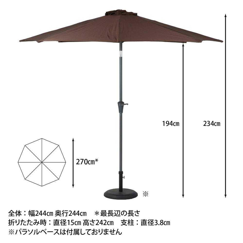 アルミパラソル ブラウン アルミ製 (約)幅270×奥行270×高さ234cm【別送品】
