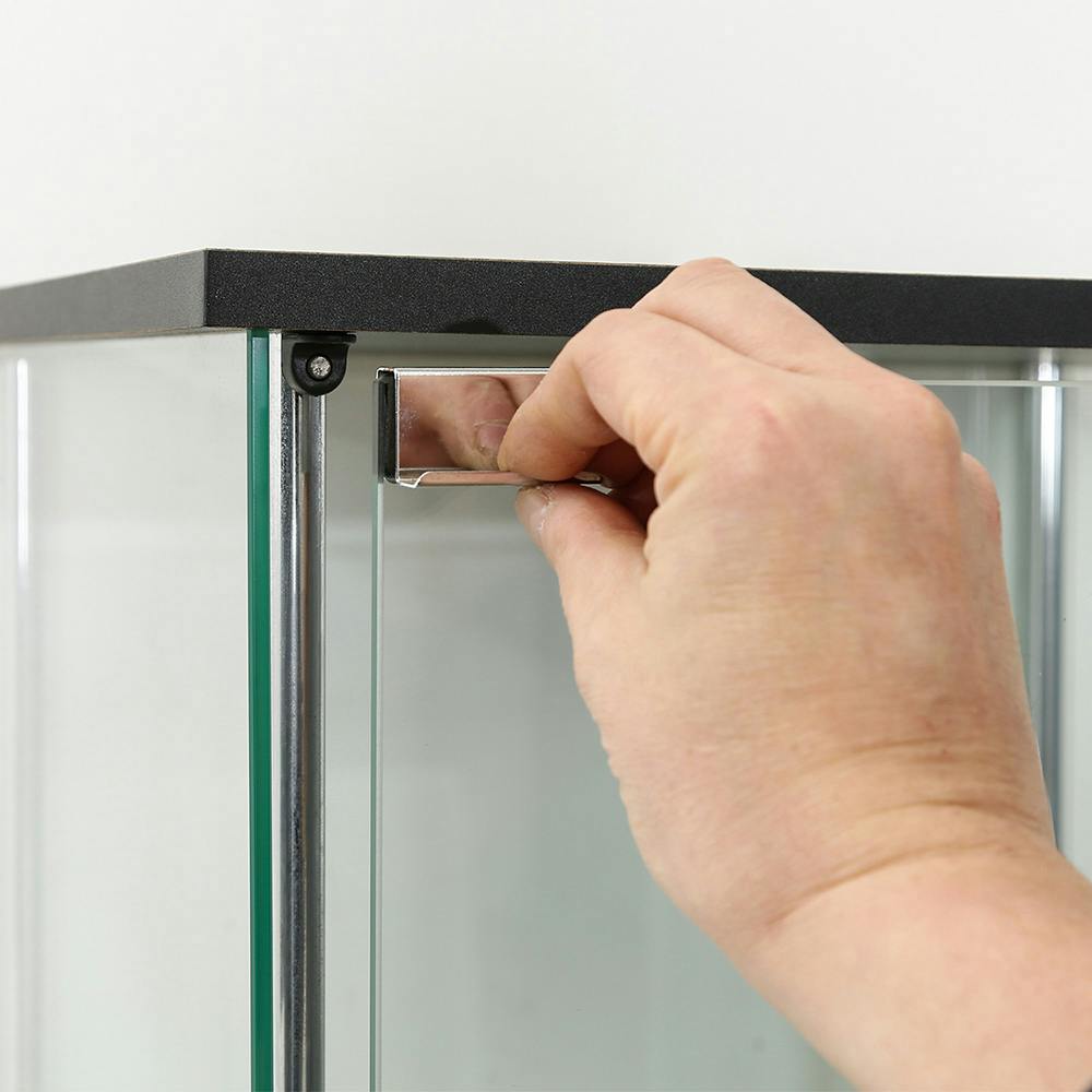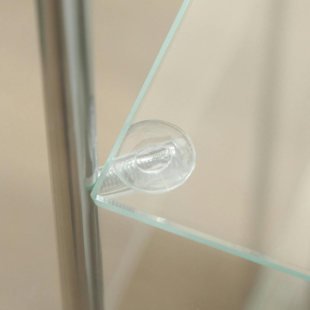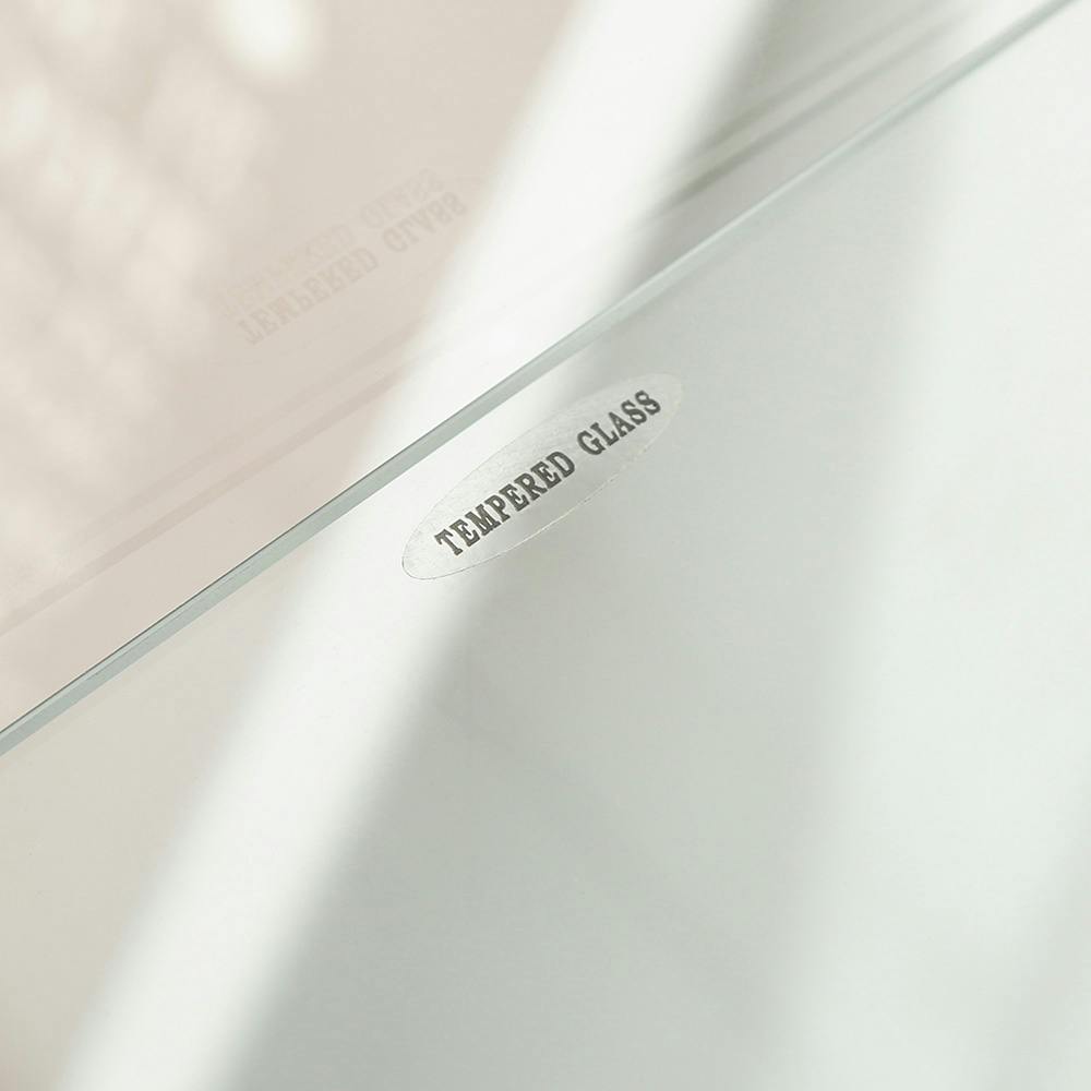 天板・地板:プリント紙化粧繊維板、柱:金属(鋼)、棚板・側板:強化ガラス