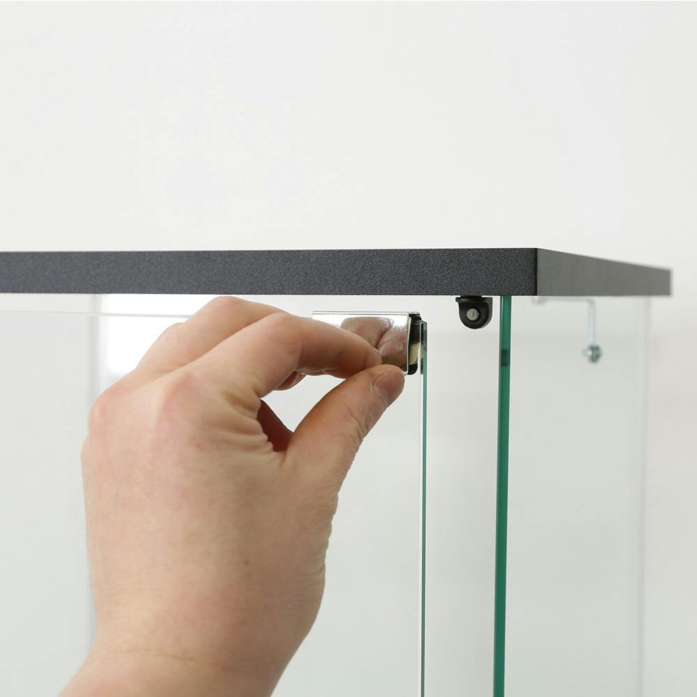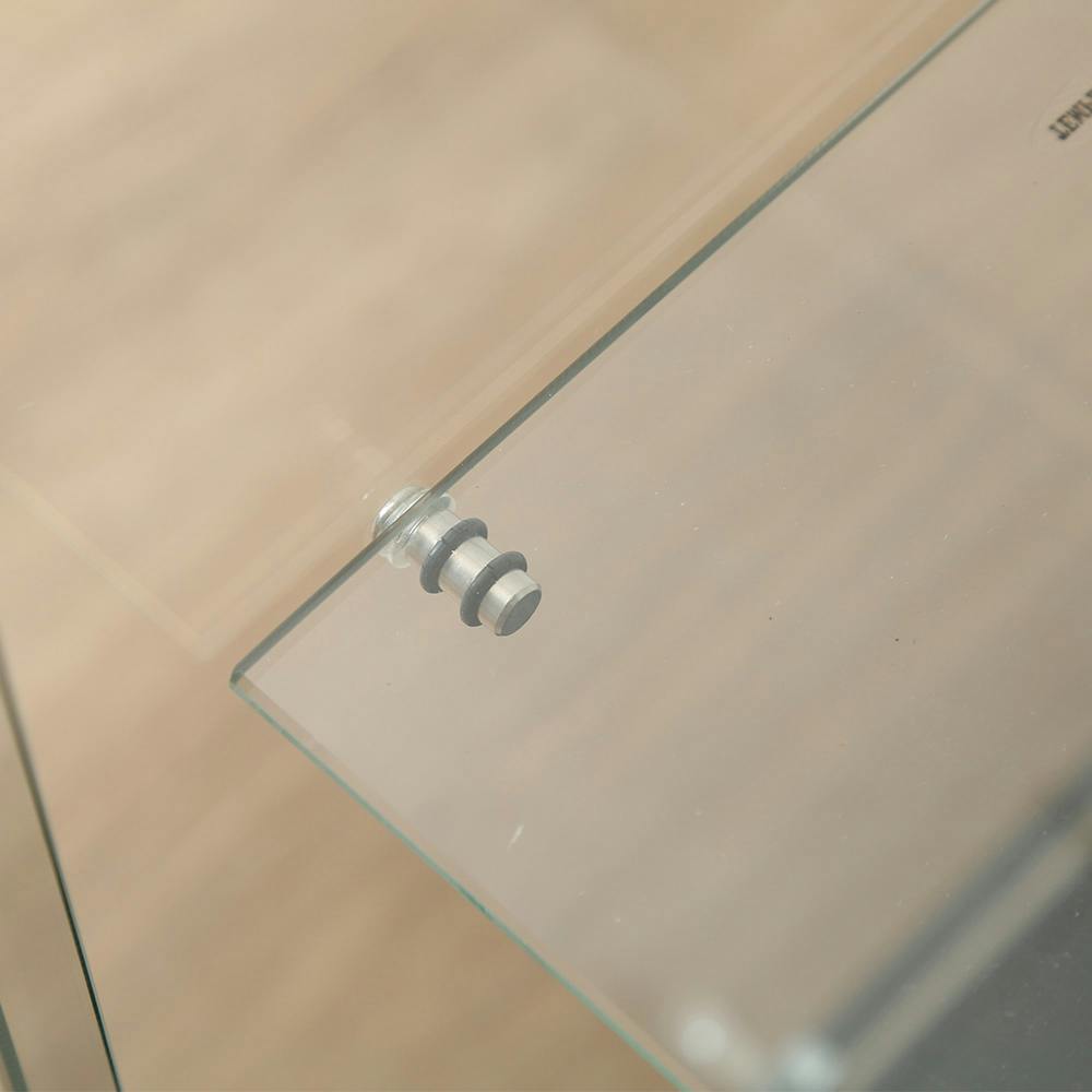 高級感のある4面ガラス張りのコレクションケース。展示物が見やすいフレームレス構造。